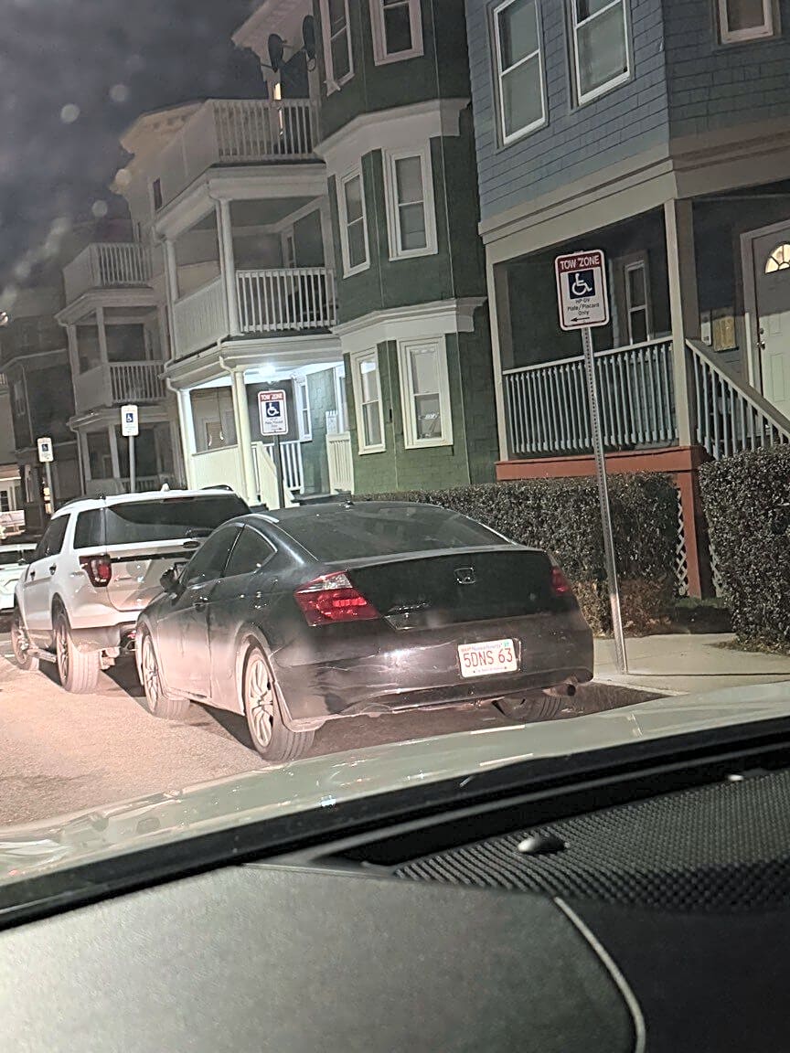 CLOSED #101006410583Case Resolved. This car has a Charlestown RPP. This car has a Charlestown RPP. This car has a Charlestown RPP.