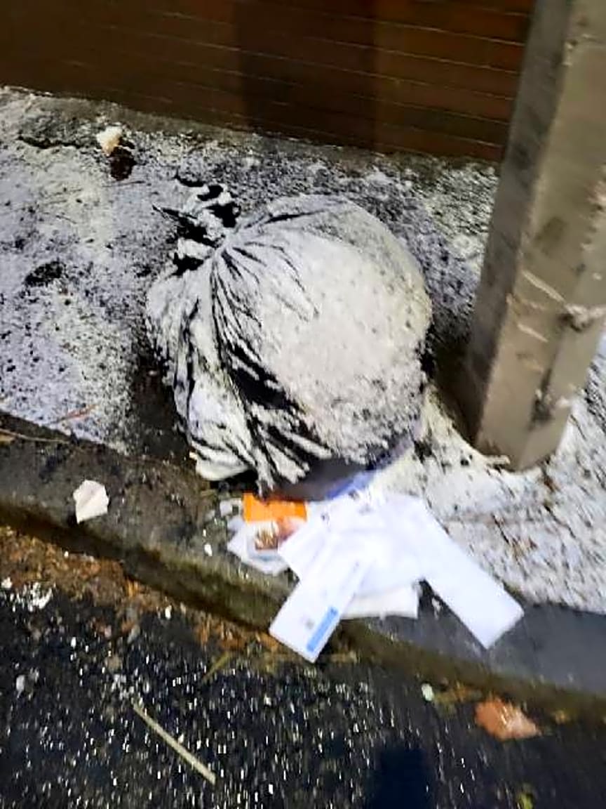 CLOSED #101006439107Resolved. Searched area and no syringes was recovered that is a plunger can be safely discarded.