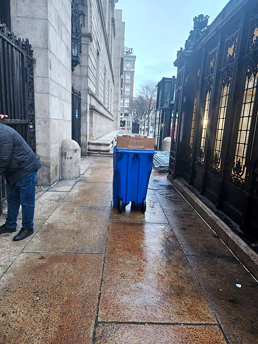 580 Ashmont St, Dorchester, Ma, 02122Empty Trash barrels out on curb 24 hours after pick up