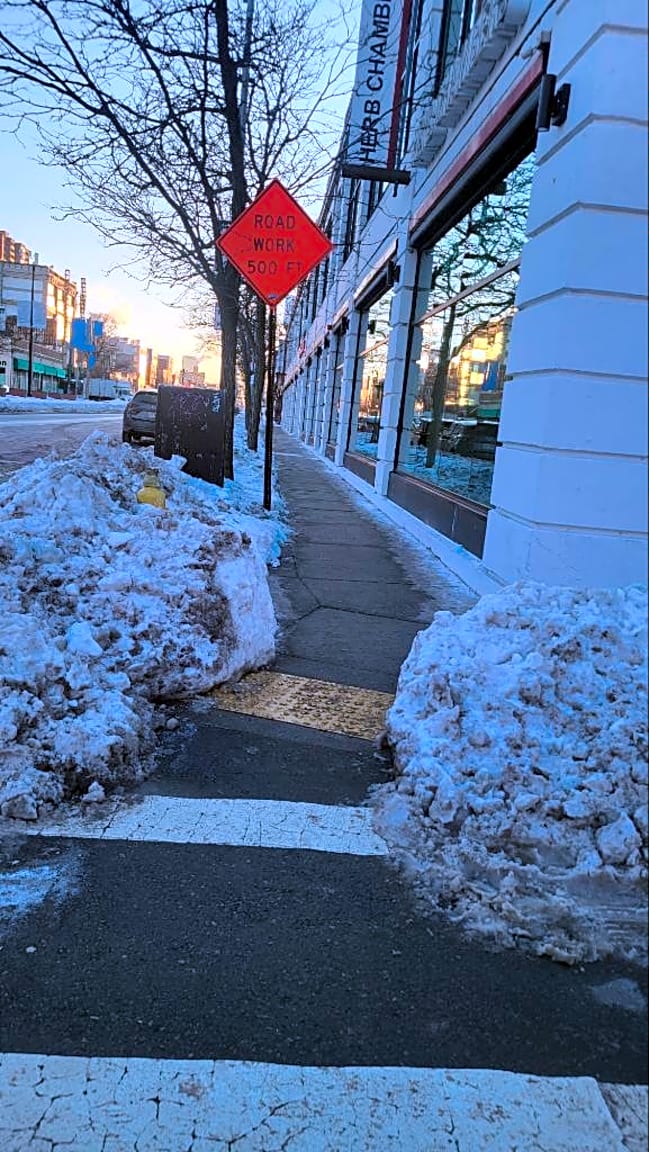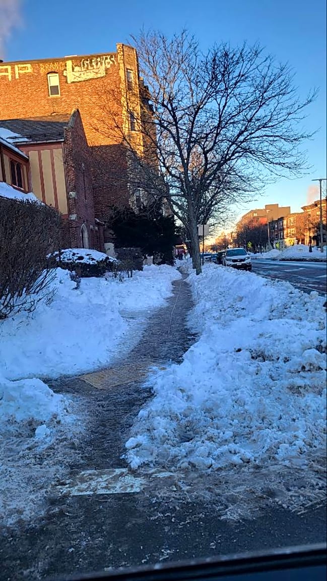 5 Saint Lukes Rd, Allston, Ma, 02134snow has not yet fully been cleared outside on brighton ave. impossible for strollers/wheelchairs to pass and people cannot pass each other when walking