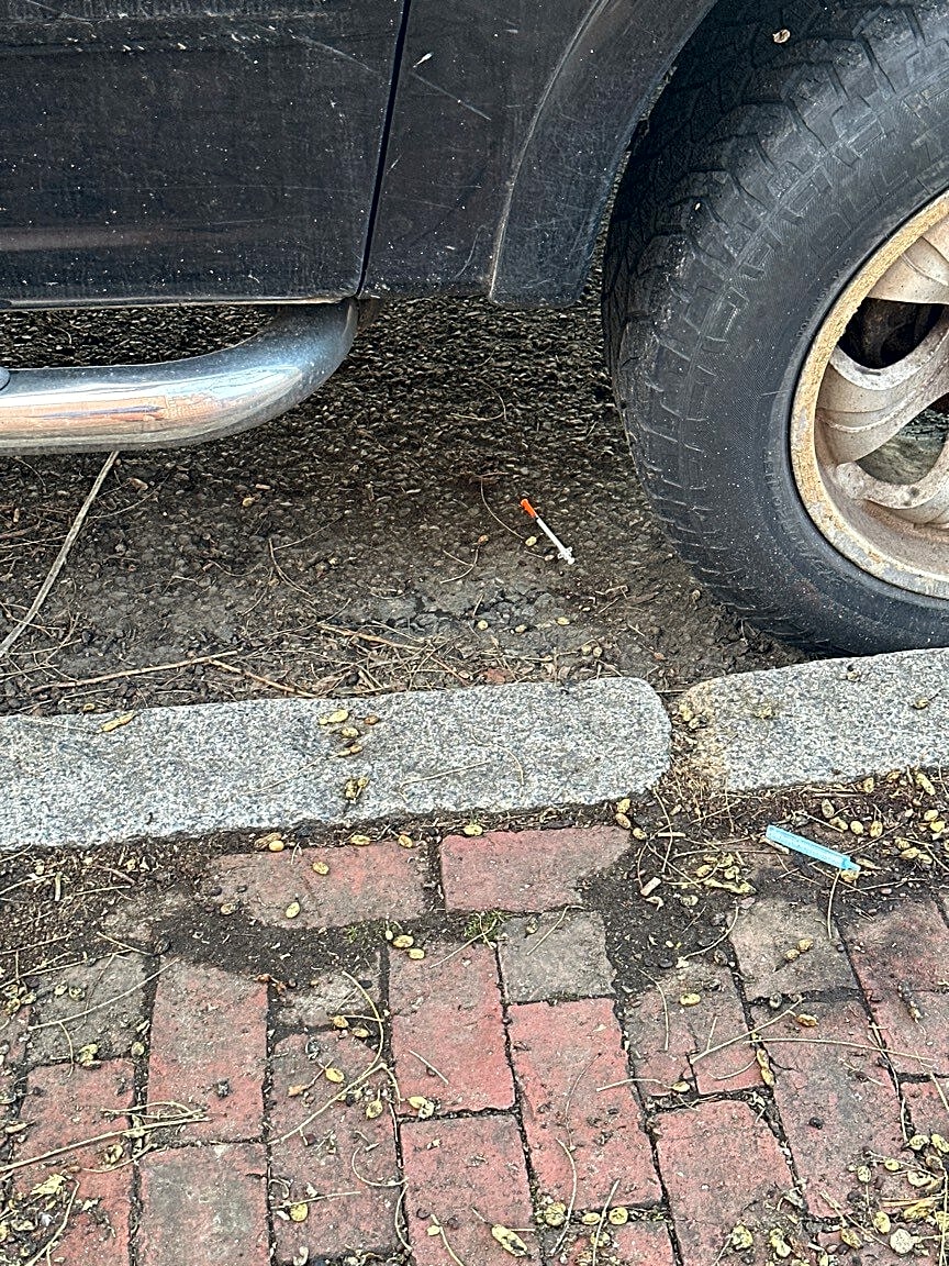 508 Shawmut Ave, Roxbury, Ma, 02118Multiple syringes in front of steps and in planter. Next two steps at 508 shawmutt