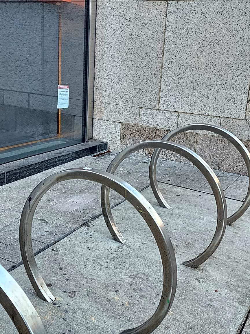 Intersection Of Blagden St And Exeter St, Boston, MaCollection of 4 in the right gutter behind the second row of bike racks on the Exeter side of the BPL