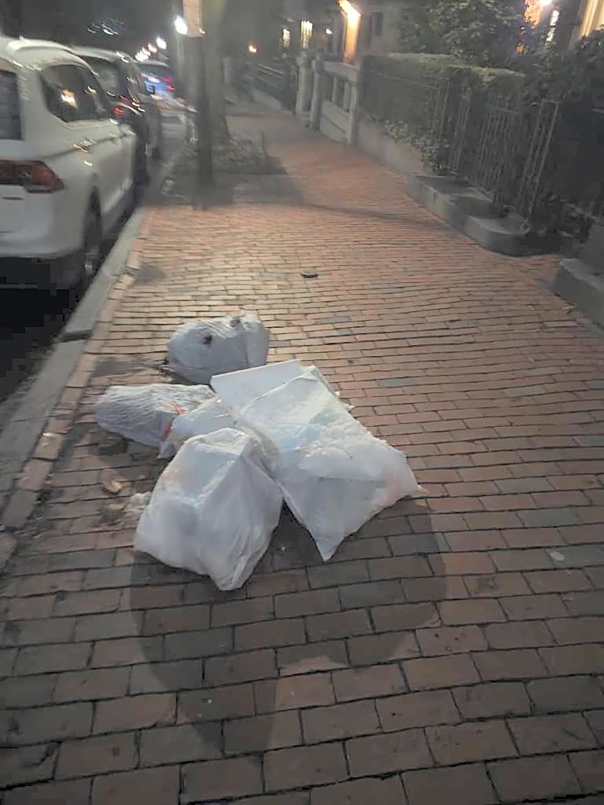 57 Mount Vernon St, Boston, Ma, 02108Trash collection missed. Bags were placed out on Sunday night