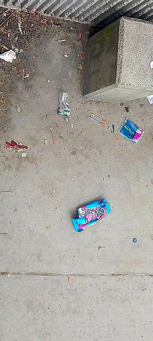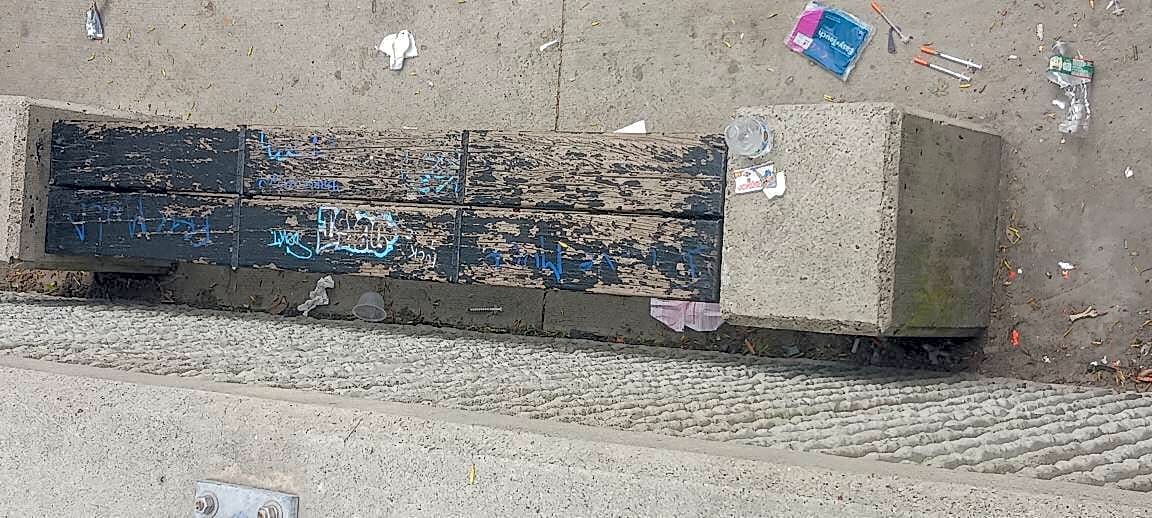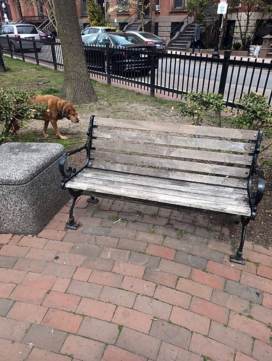 544 P Massachusetts Ave, Roxbury, Ma, 02118Syringe under Park bench by fountain in front of 542 Mass Ave
