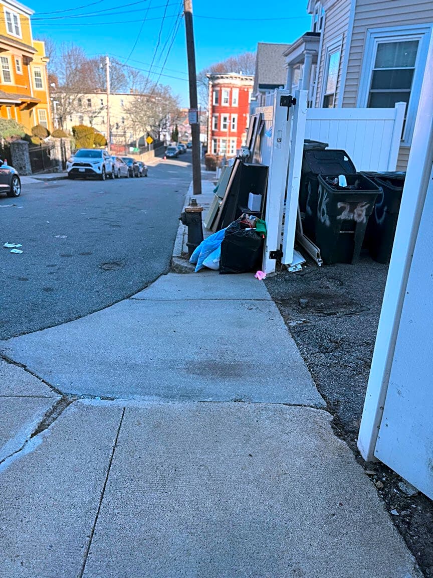 55 Belgrade Ave, Roslindale, Ma, 02131Dumpster and fence blocking sidewalk