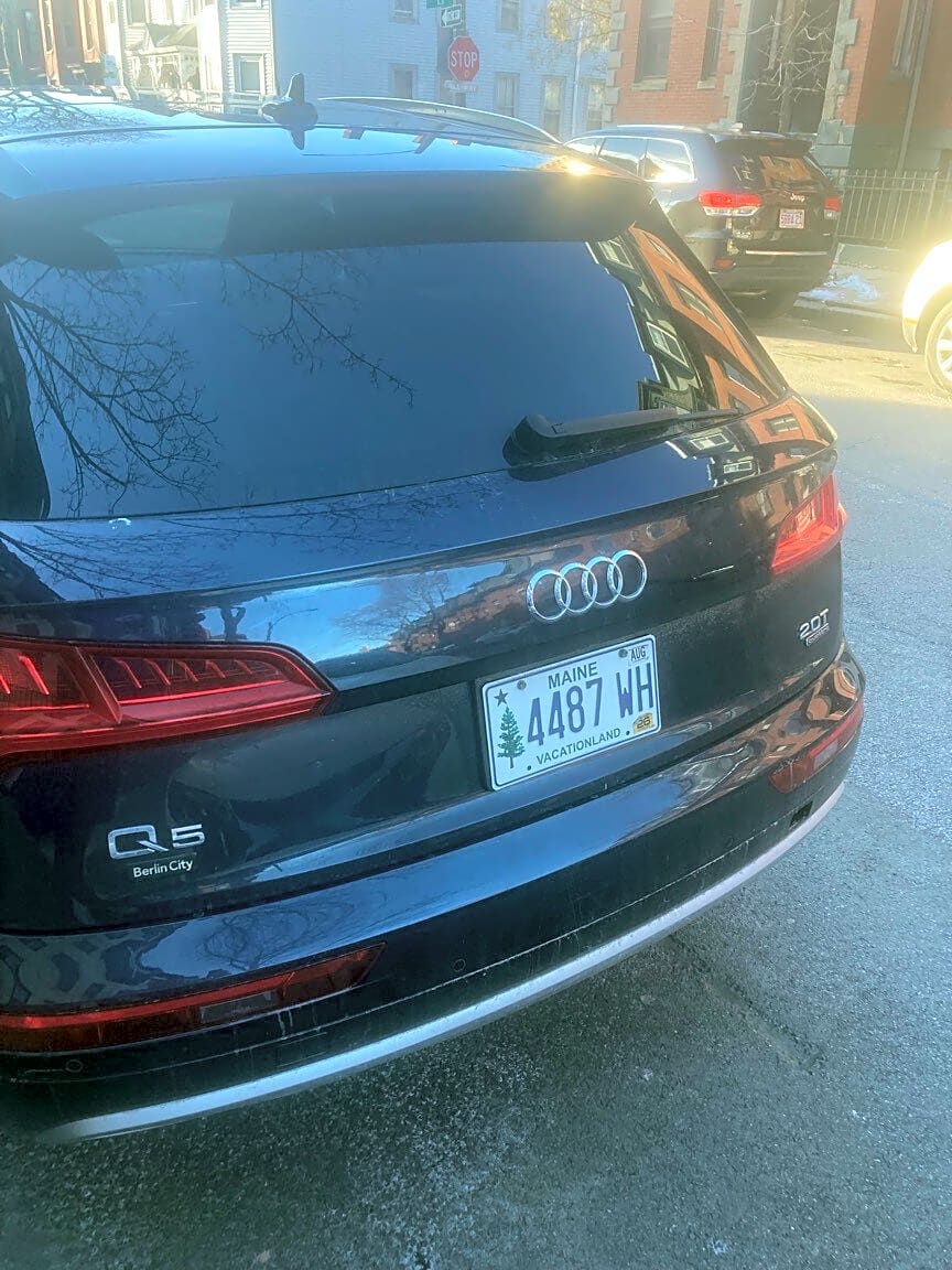 437 D St, Boston, Ma, 02210Illegally parked car blocking driveway.