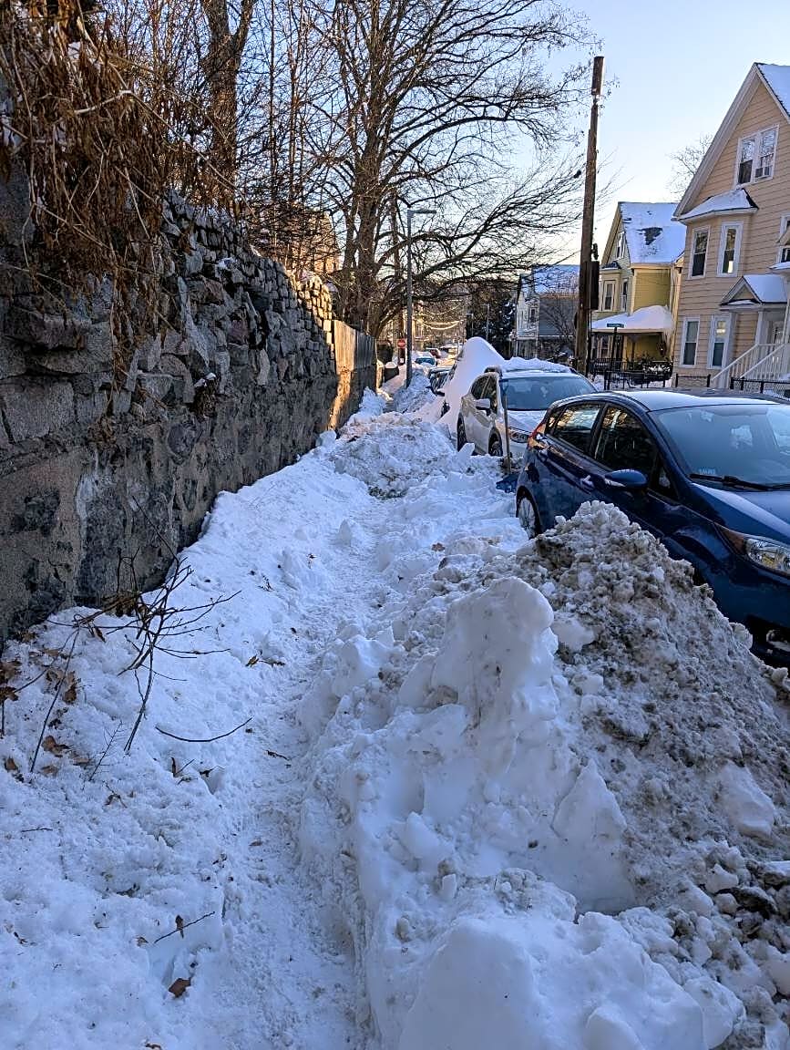 115 Sedgwick St, Jamaica Plain, Ma, 02130Someone has shoveled all the snow from their car into the sidewalk, completely blocking the walking path, on the lot behind 115 Sedgwick St which borders Carolina Ave.