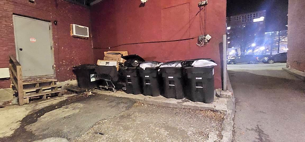 39 39 A Worcester Sq, Roxbury, Ma, 02118At least four or five rats running in these trash barrels under the stairs and under the car. This is in the public alley behind El barrio on Harrison Ave.