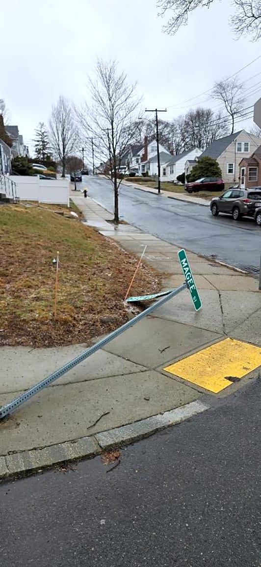 Intersection Of Magee St And Sherrin St, Hyde Park, MaSign down on sidewalk