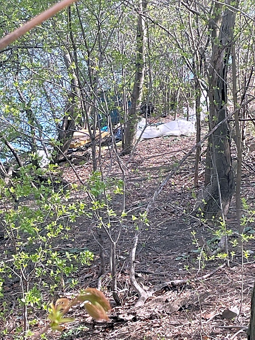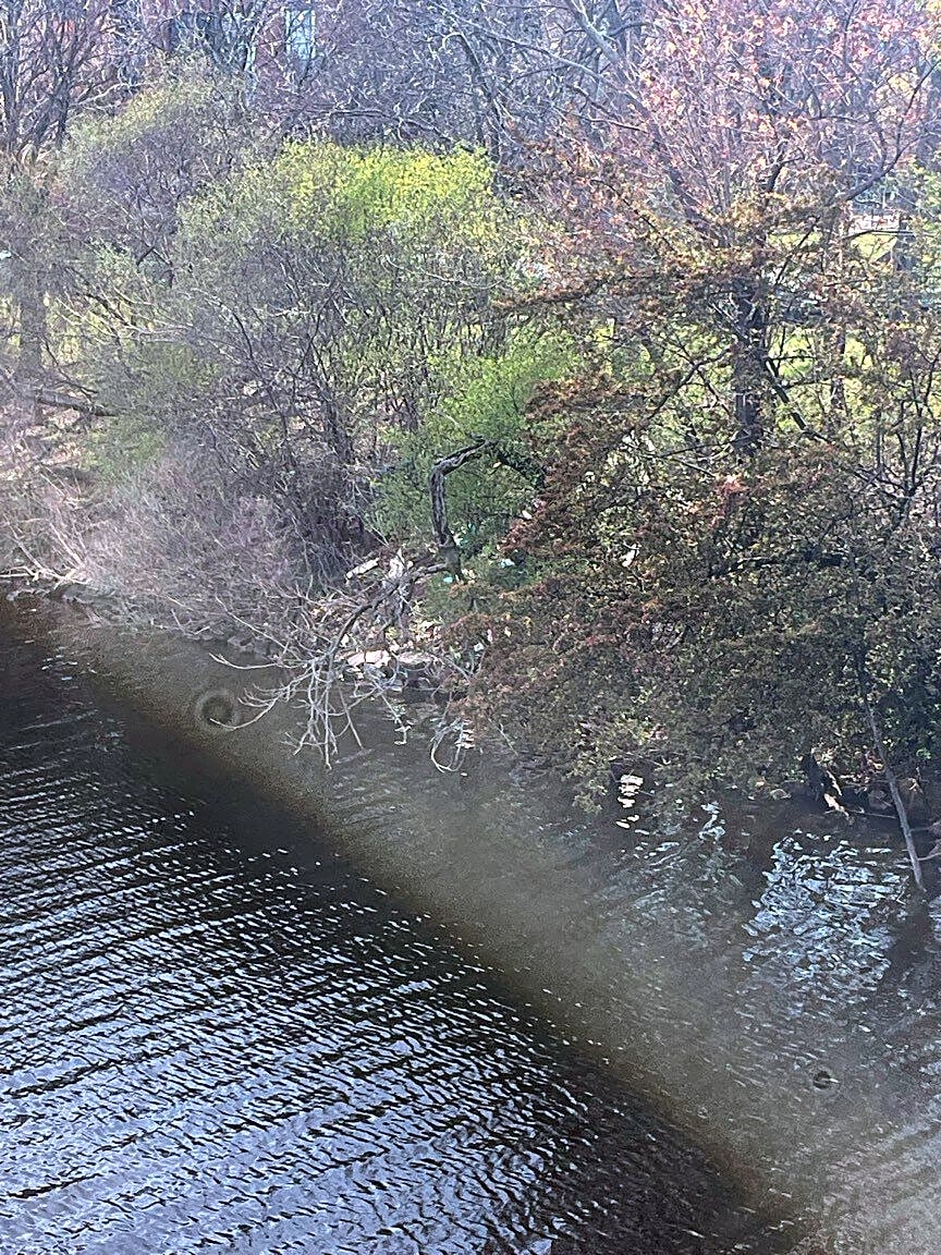 Intersection Of Western Ave And Soldiers Field Rd, Boston, MaTrash going into river from illegal encampment