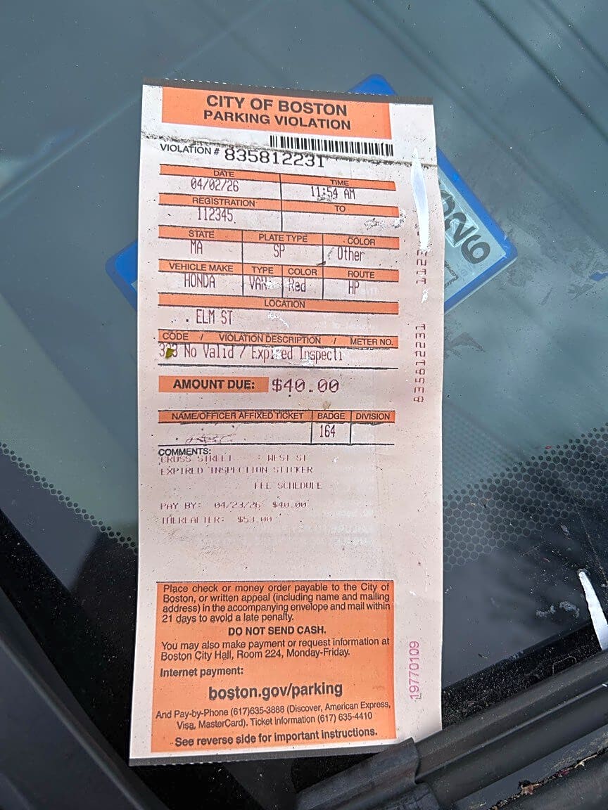 67 West St, Hyde Park, Ma, 02136Car parked wrong direction, no inspection and flat tire with ticket on windshield on street unmoved since beginning of April on elm street near west street intersection