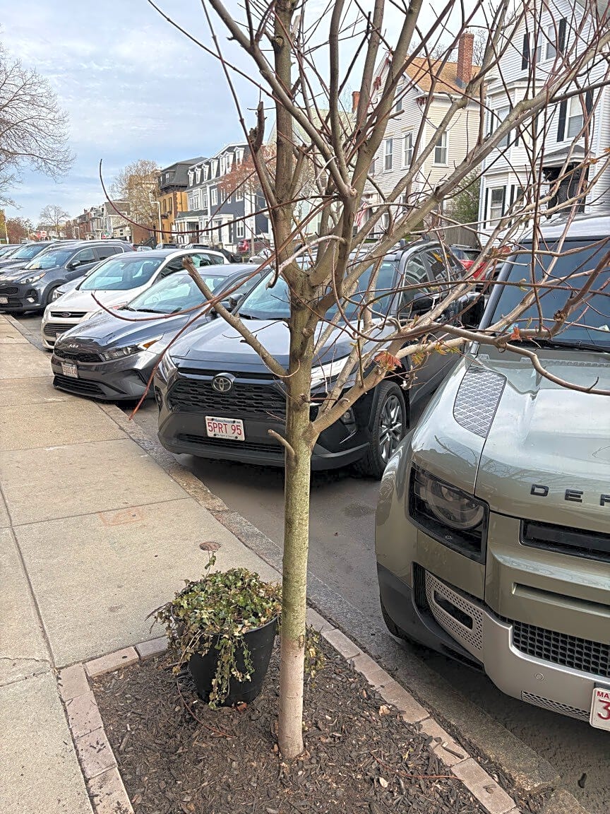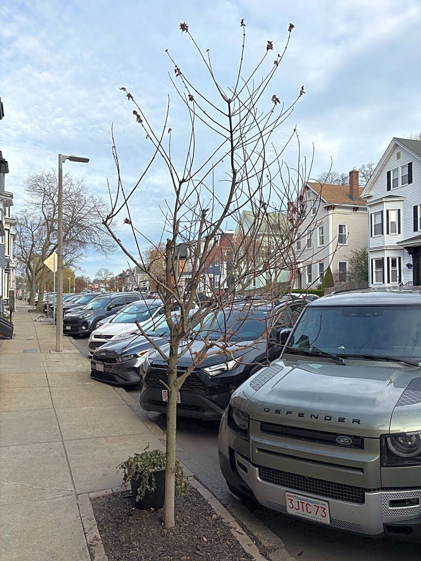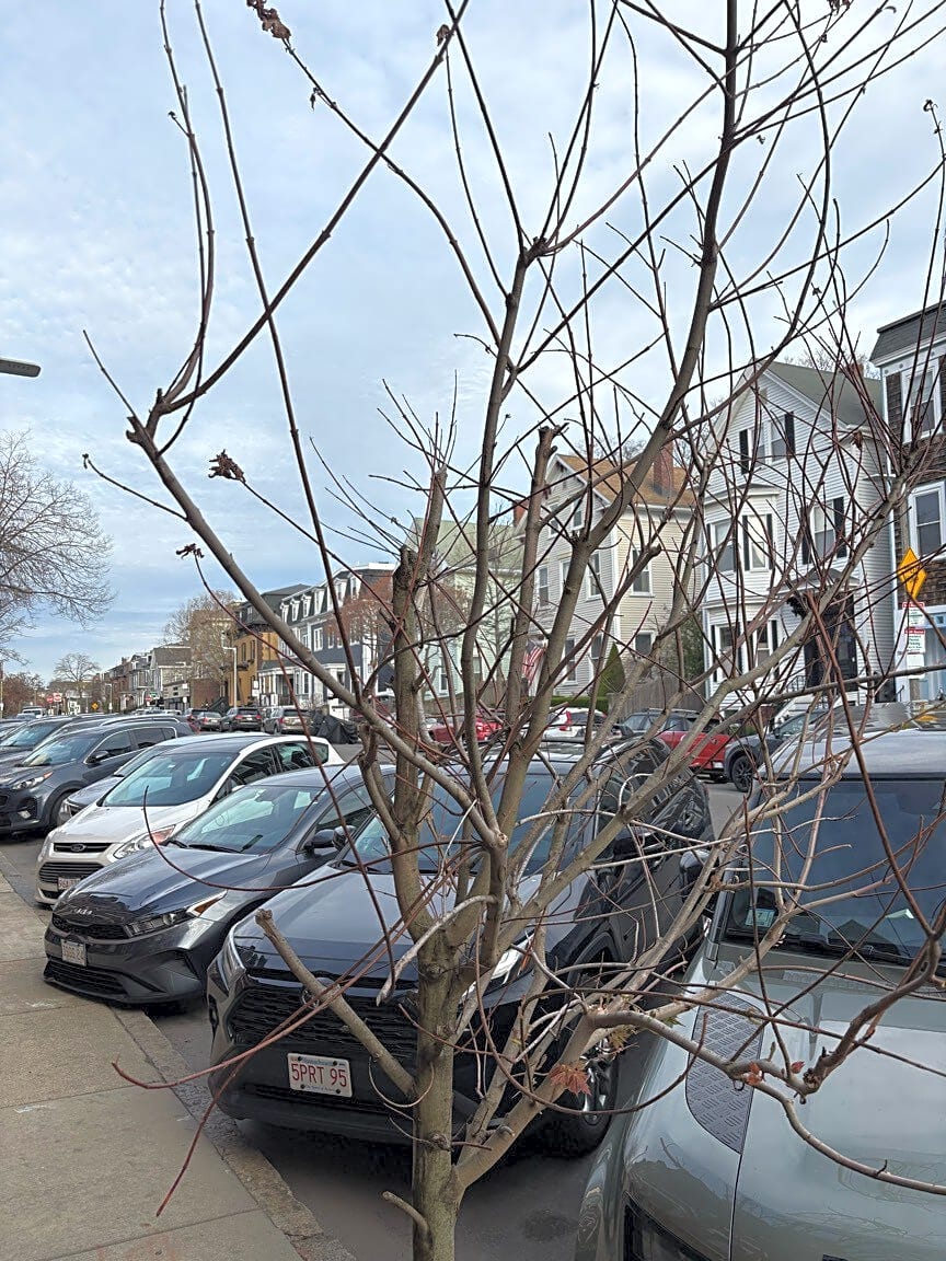 Intersection Of Claremont Park And Claremont St, Roxbury, MaNeedle in front of tree at 36 Claremont Park