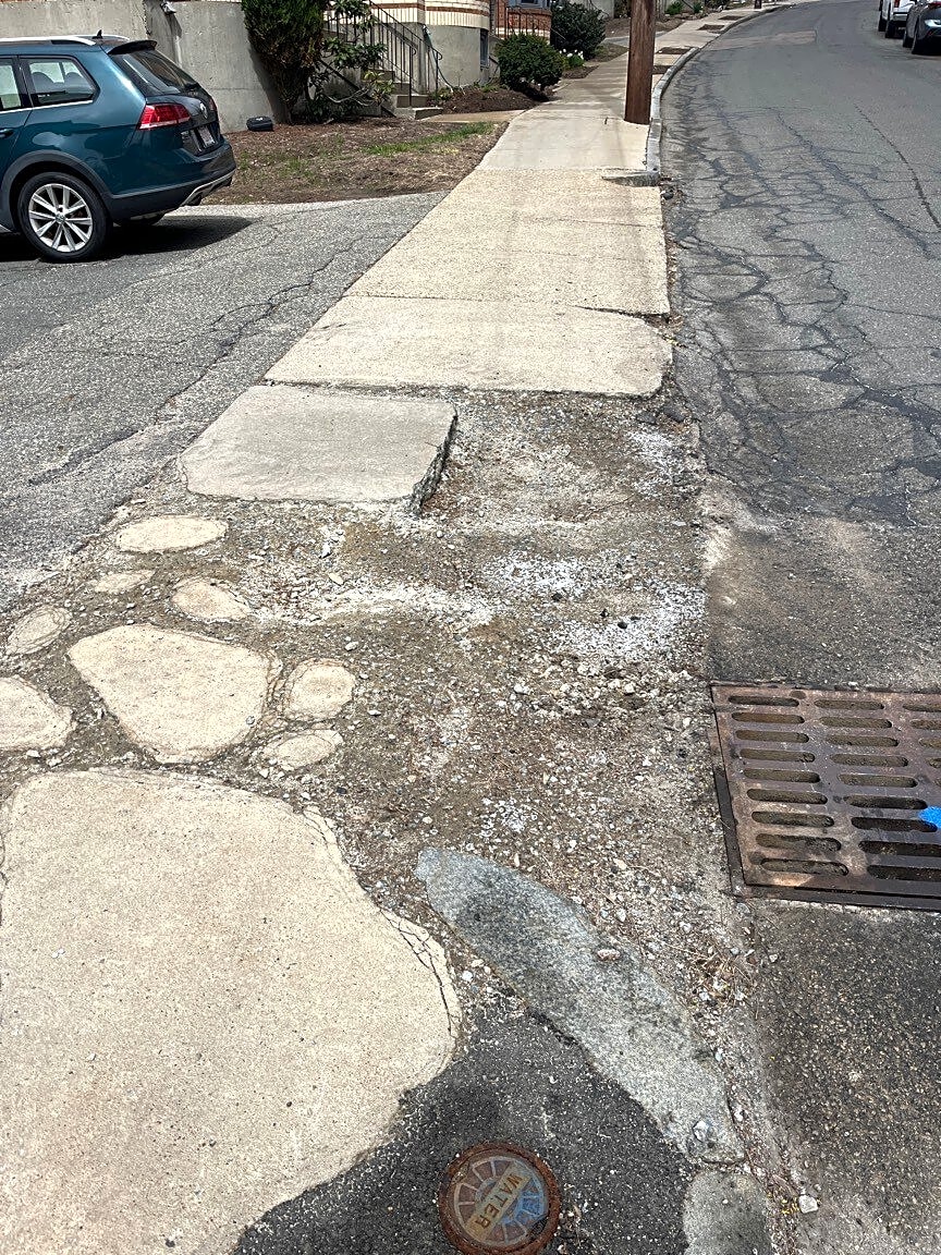 190 Fisher Ave, Mission Hill, Ma, 02120Badly deteriorated sidewalk. Safety hazard. Impassable by wheelchair, assistive devices, etc..