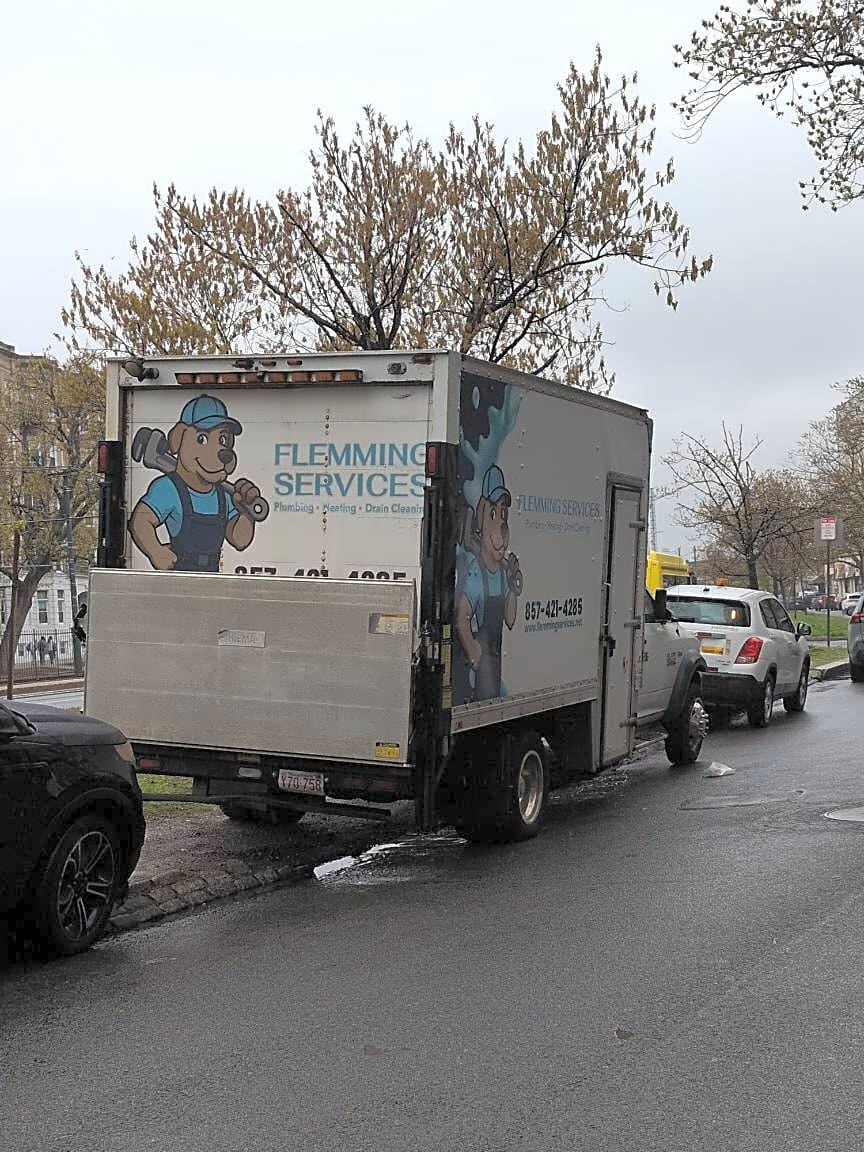 1144 Commonwealth Ave, Allston, Ma, 02134Fleming Services Box Truck (MA#Y70758) parked on grass