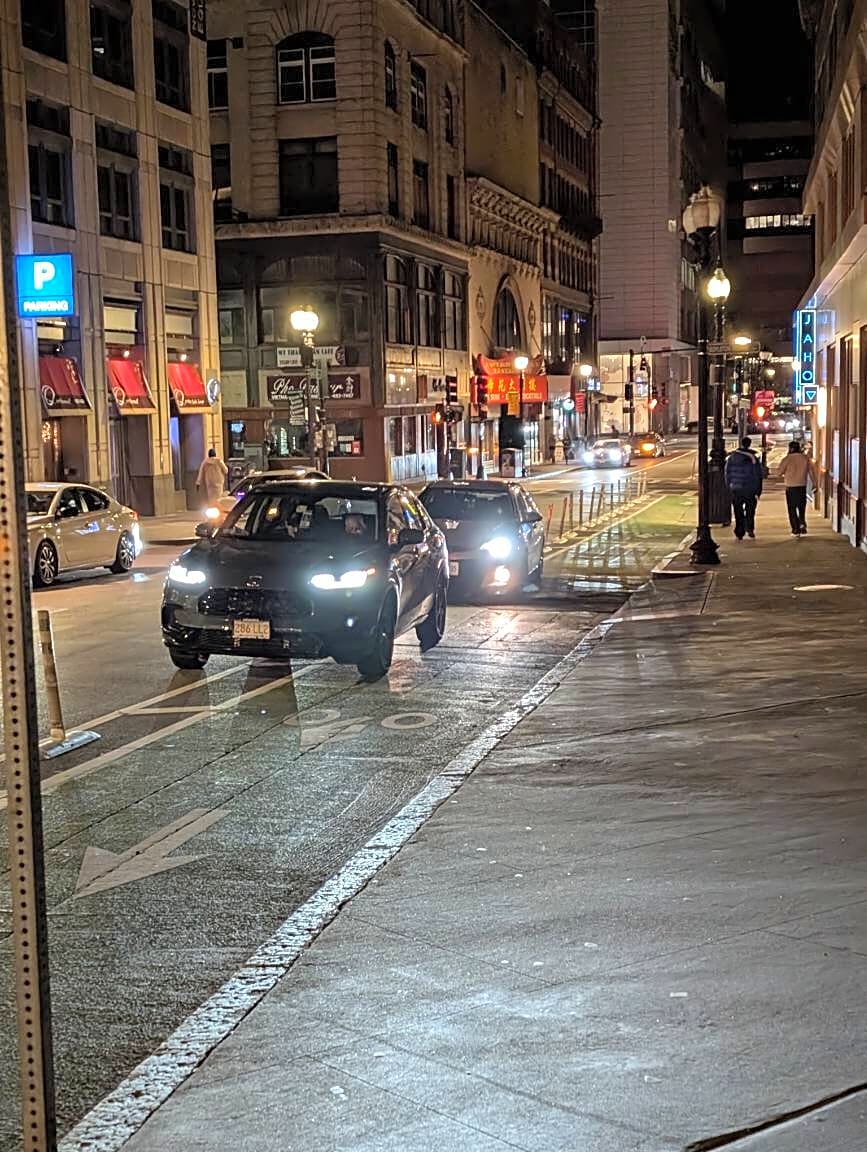 Intersection Of Boylston Sq And Washington St, Boston, MaMultiple cars instructing bike lane