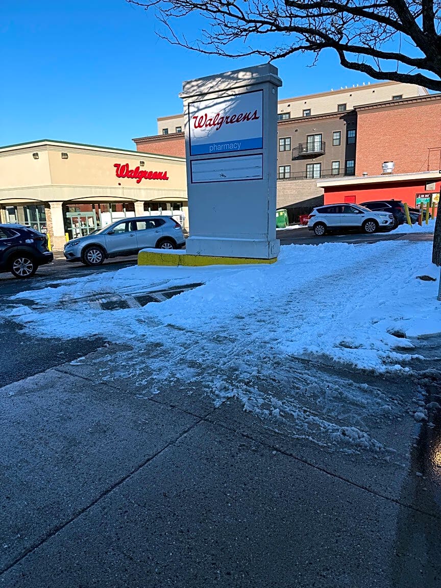 734 E Broadway , South Boston, Ma, 02127Walgreens sidewalk not shoveled.