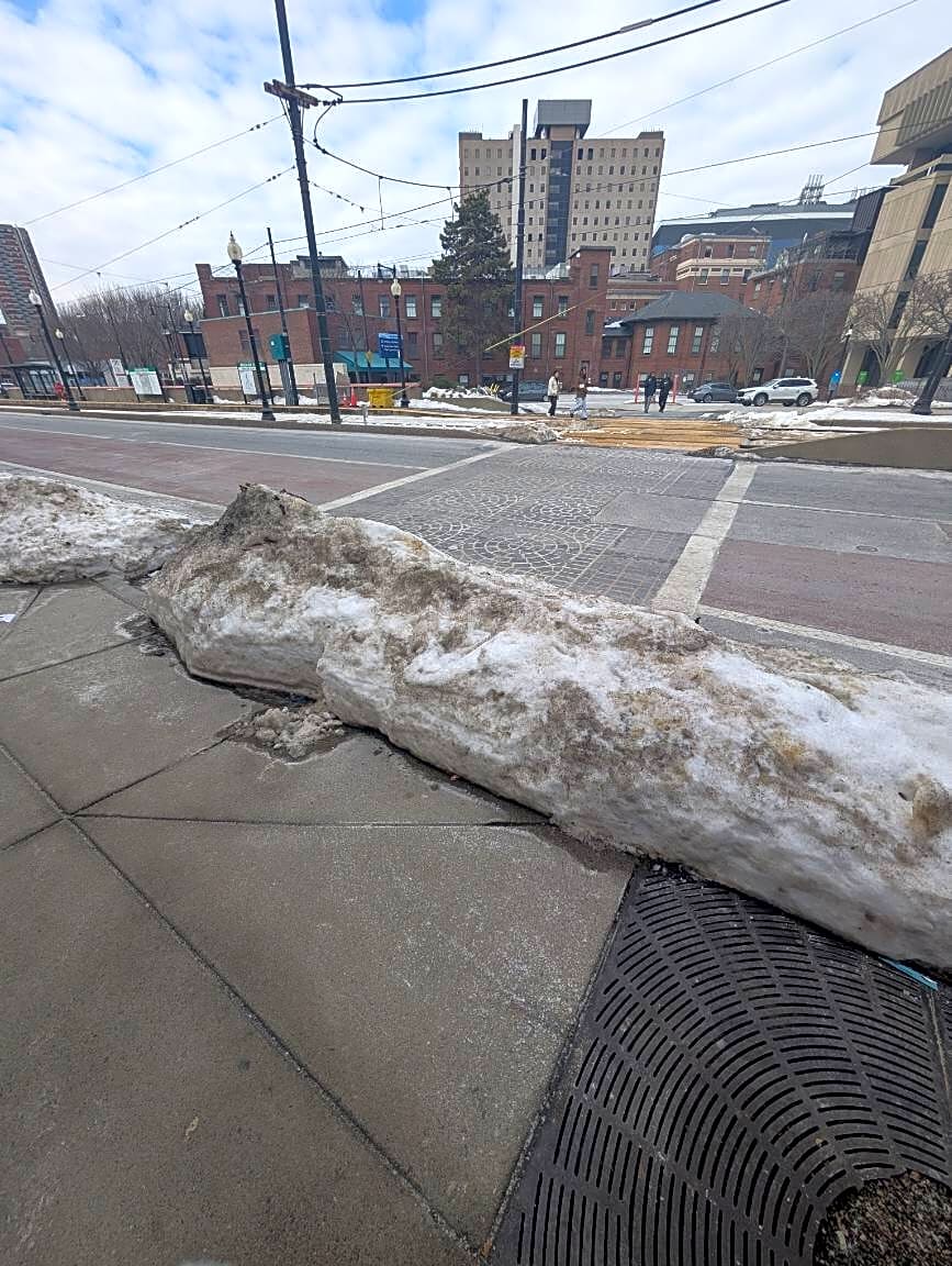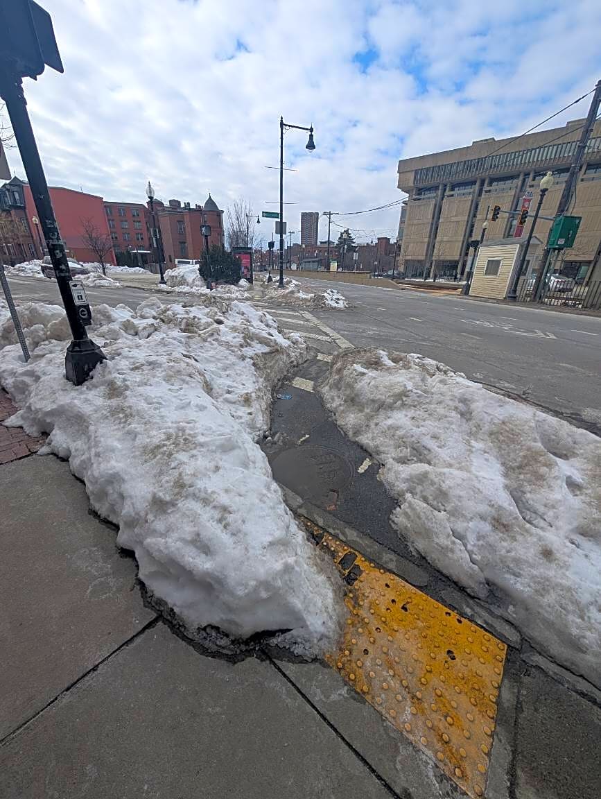 704 Huntington Ave, Mission Hill, Ma, 02120Snow blocking crosswalk to a greenline stop on city property.