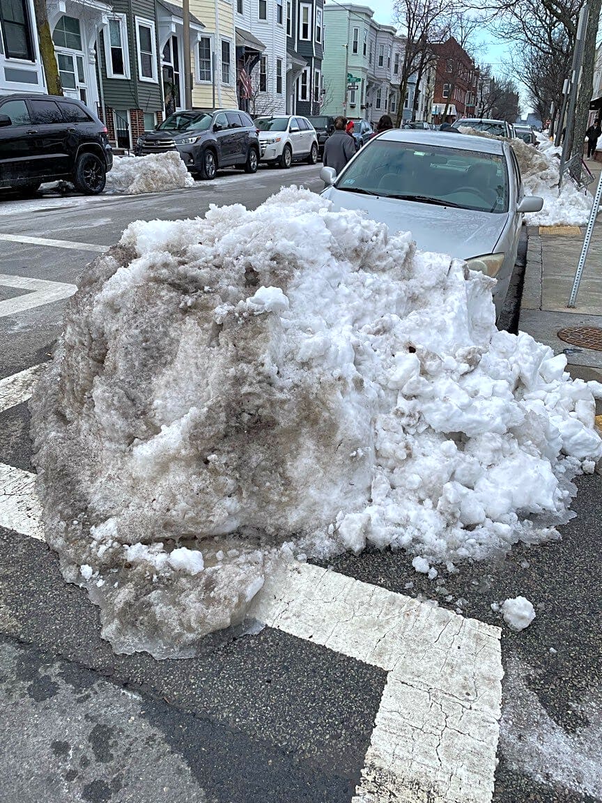 Intersection Of H St And E Sixth St, South Boston, MaSnow mountain left on crosswalk in front of South Boston Neighborhood House Senior Center over two weeks! Totally unacceptable.