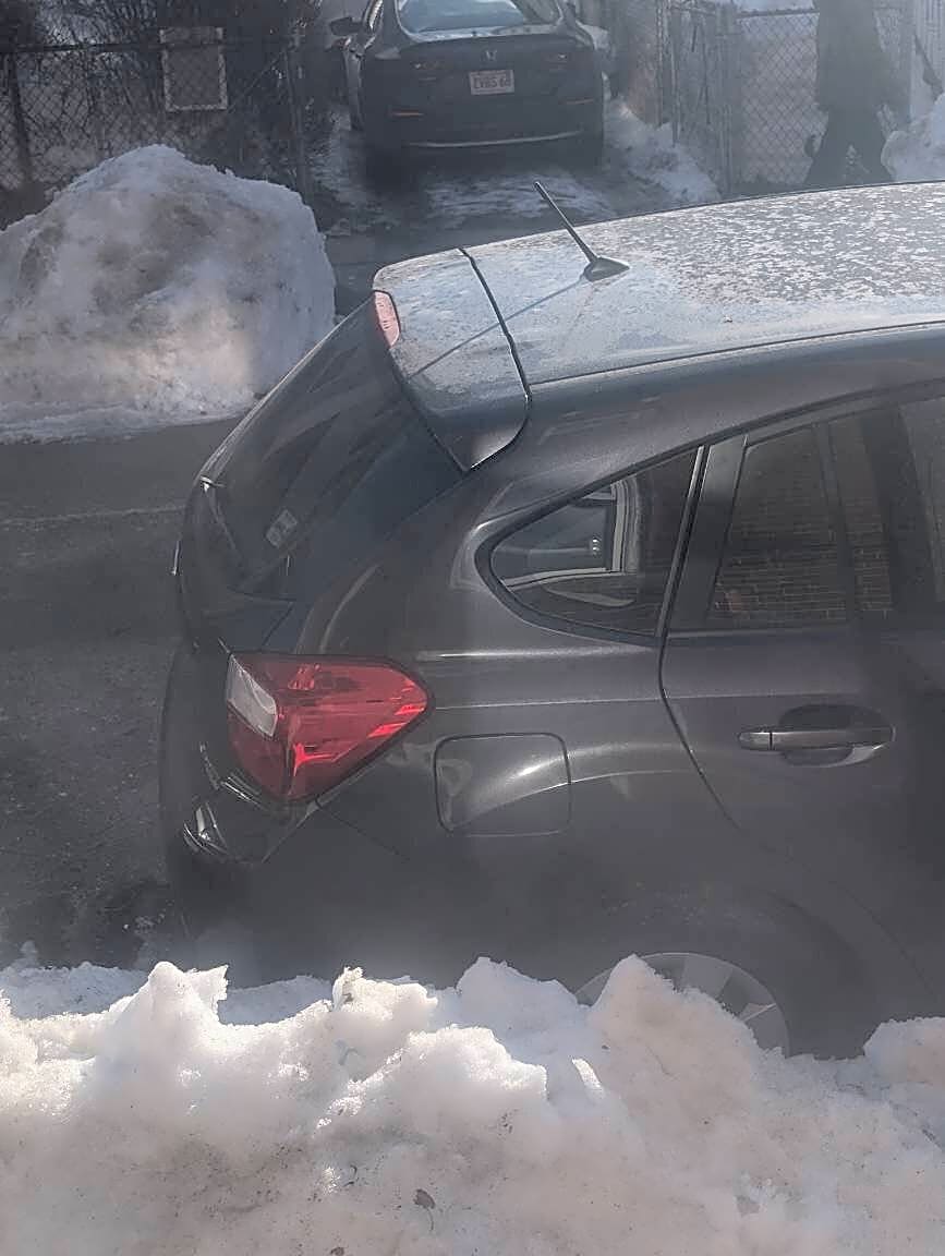 50 Saxton St, Dorchester, Ma, 02125This Subaru has not moved for 3 weeks and is taking up vital parking that is sparse with piles of snow. Please ticket this individual.