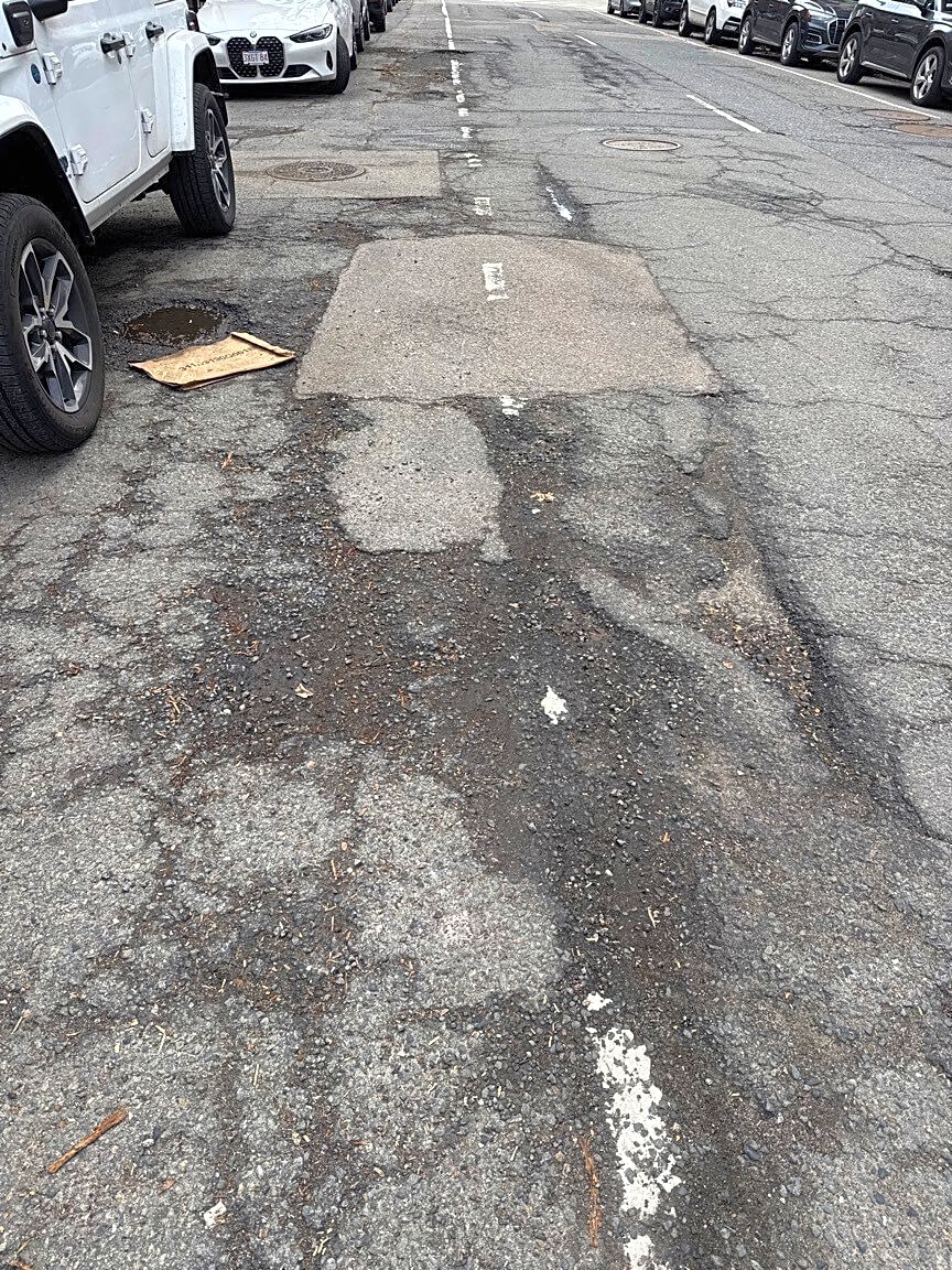 Intersection Of Crockett Ave And Milton St, Dorchester, MaMilton Street and Crockett Ave sink joke has not been repaired.