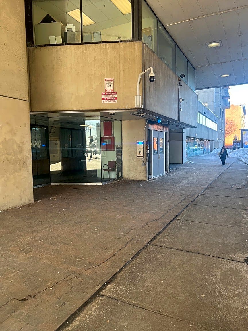 Intersection Of Clarendon St And Massachusetts Tpke E, Boston, MaNot quite needles, blood on the ground at Back Bay station’s track 3
