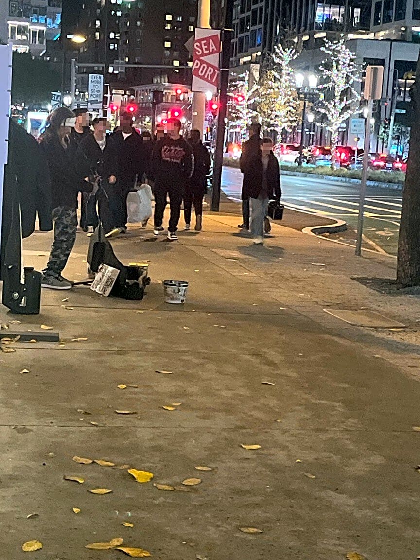 Intersection Of Boston Wharf Rd And Seaport Blvd, Boston, MaStreet performance on Seaport Boulevard sidewalk