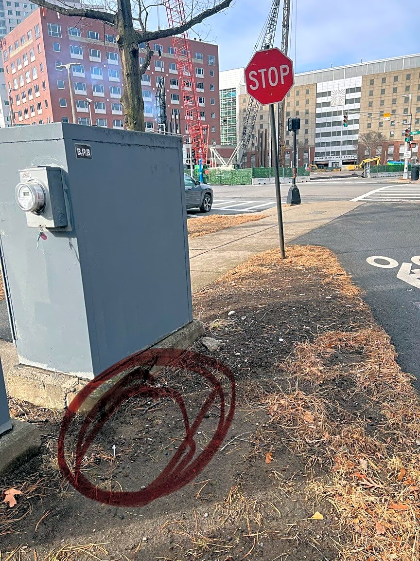 Intersection Of W Brookline St And E Brookline St And Washington St, Roxbury, Maon Washingtonat E Brookline, Franklin Sq side, in the tree pit | Needle Quantity: [One] Property Location Type: [Public]