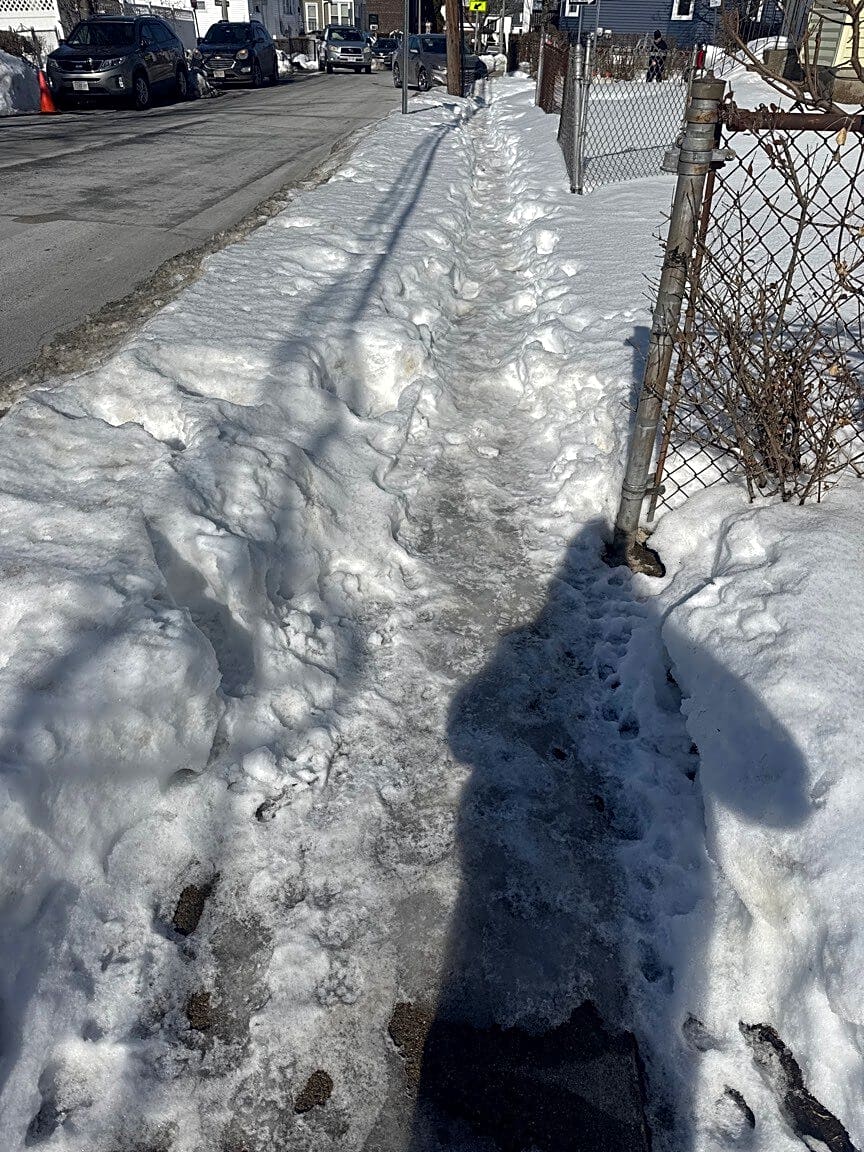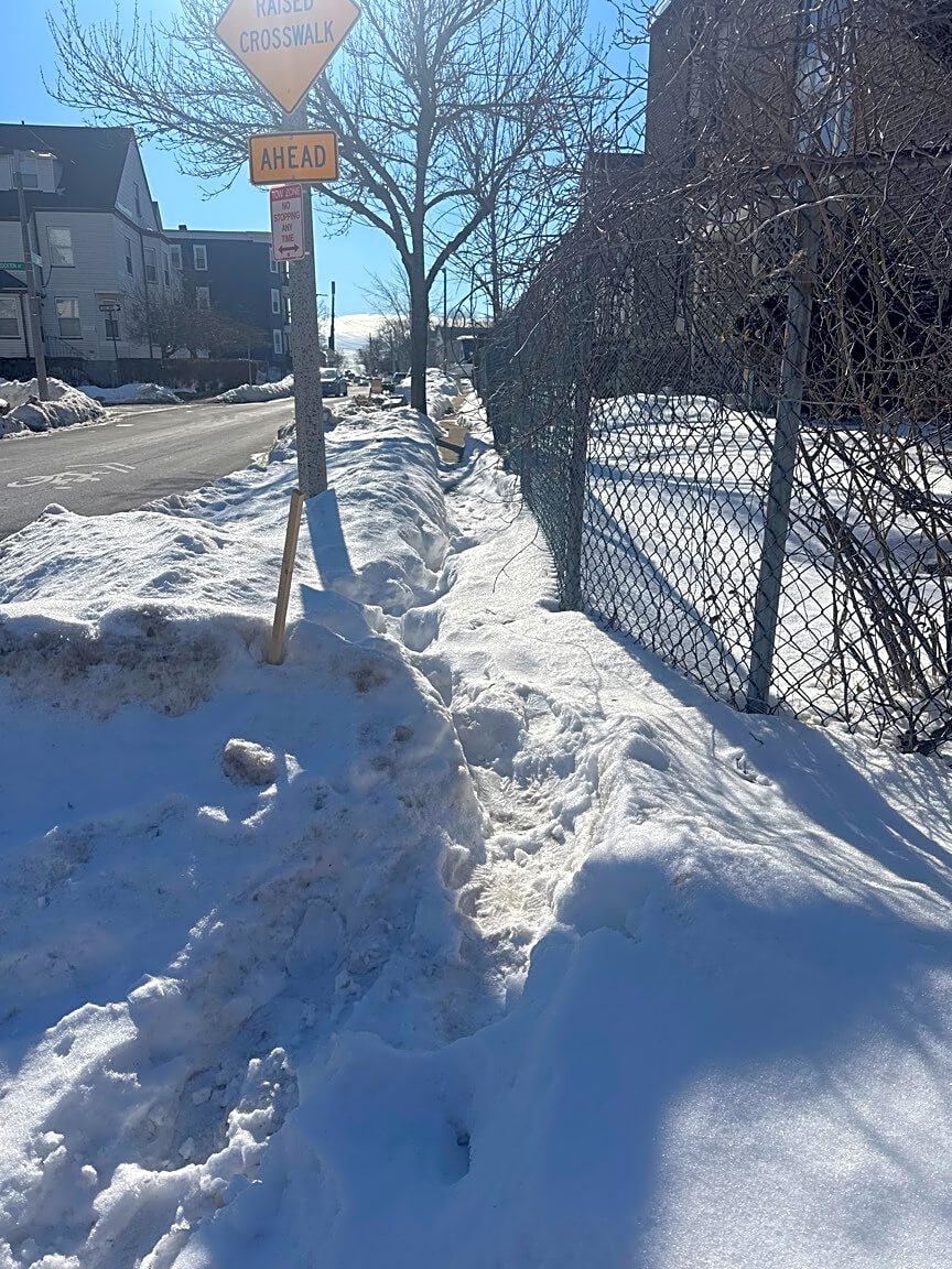 215 Pond St, Jamaica Plain, Ma, 02130Sidewalk not cleared from Fridays snow