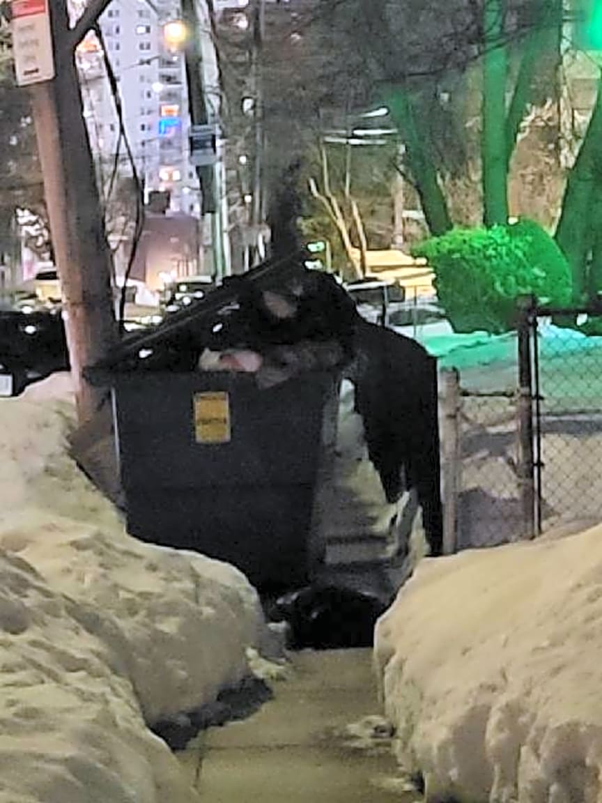 155 Dartmouth St, Boston, Ma, 02116Back Bay Station dumpsters overflowing, lids open and rats running around