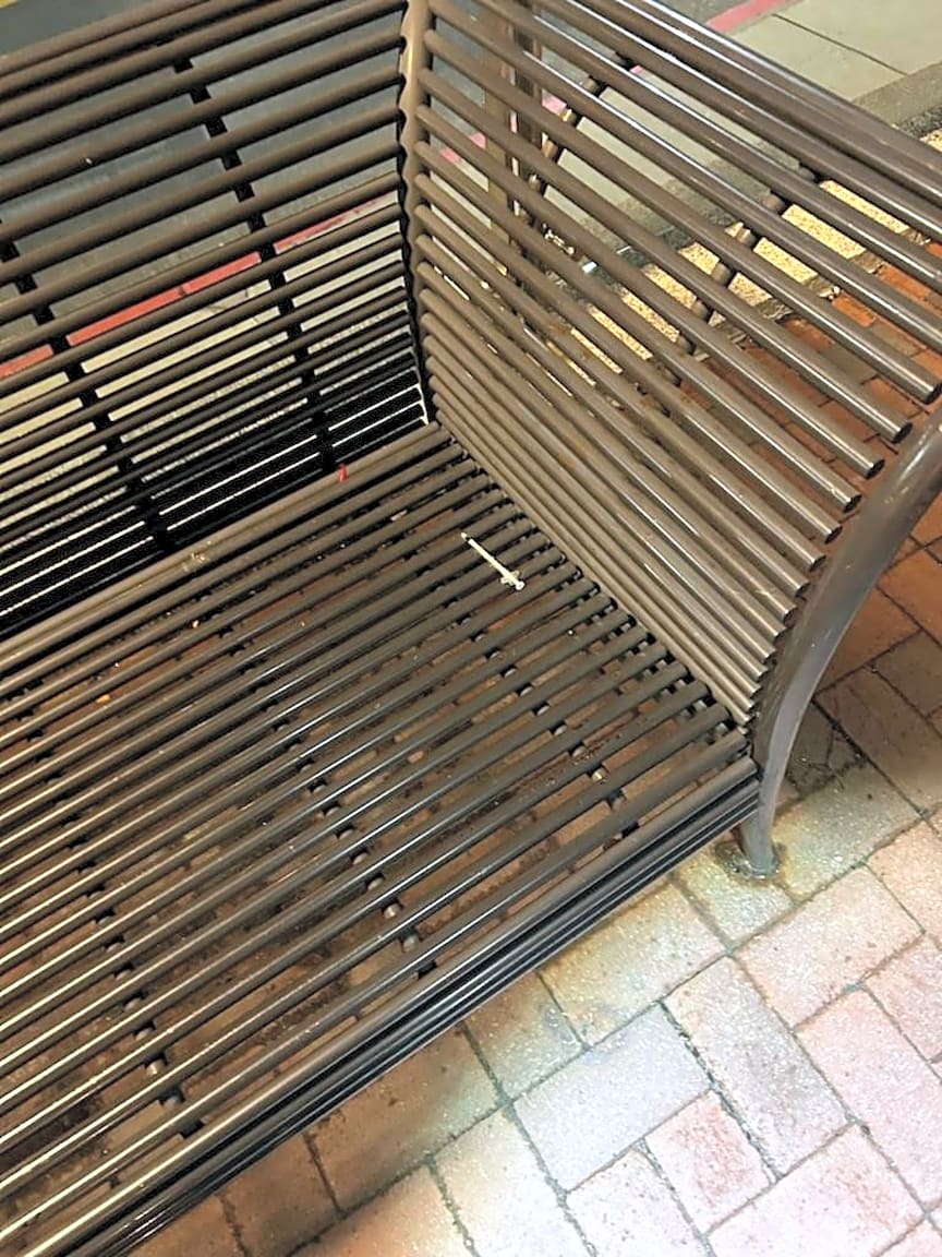 65 Huntington Ave, Boston, Ma, 02199Needle on bench in courtyard across from Dick’s Sporting Goods