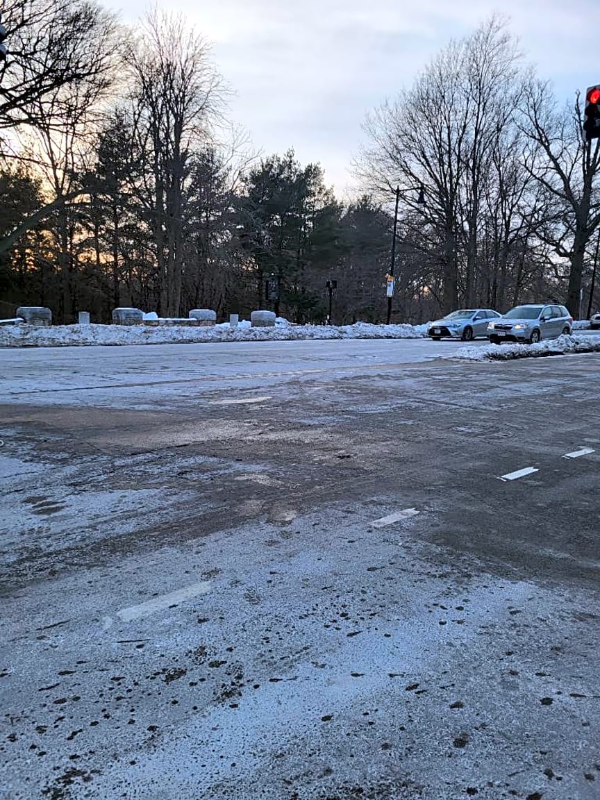 Intersection Of Eliot Brg And Soldiers Field Rd, Allston, MaSnow partially obstructing lane, cars end up partially in other lane