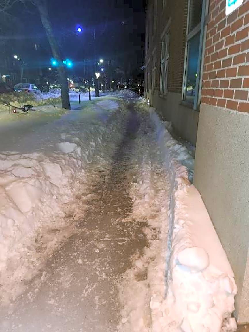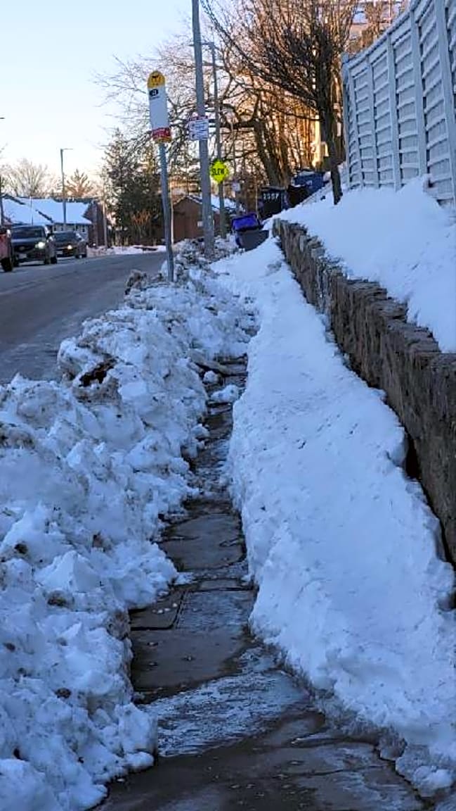 CLOSED #101006489912Noted. Failure to clear sidewalk of snow/ ice unsafe for pedestrian passage citation has been issued.