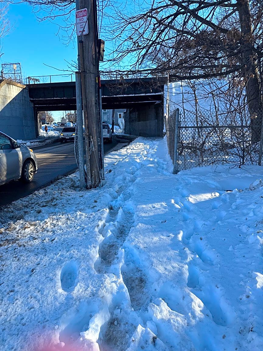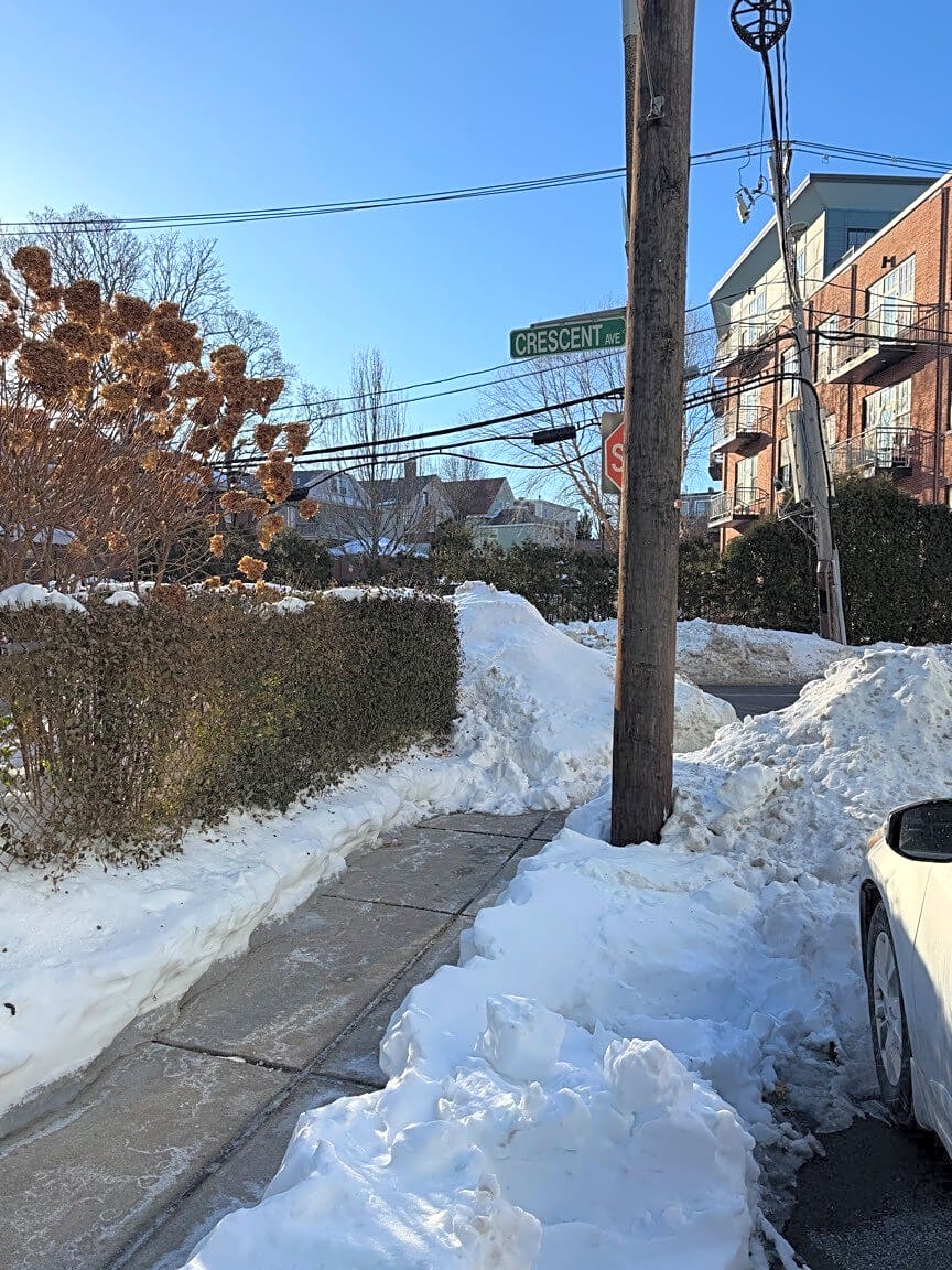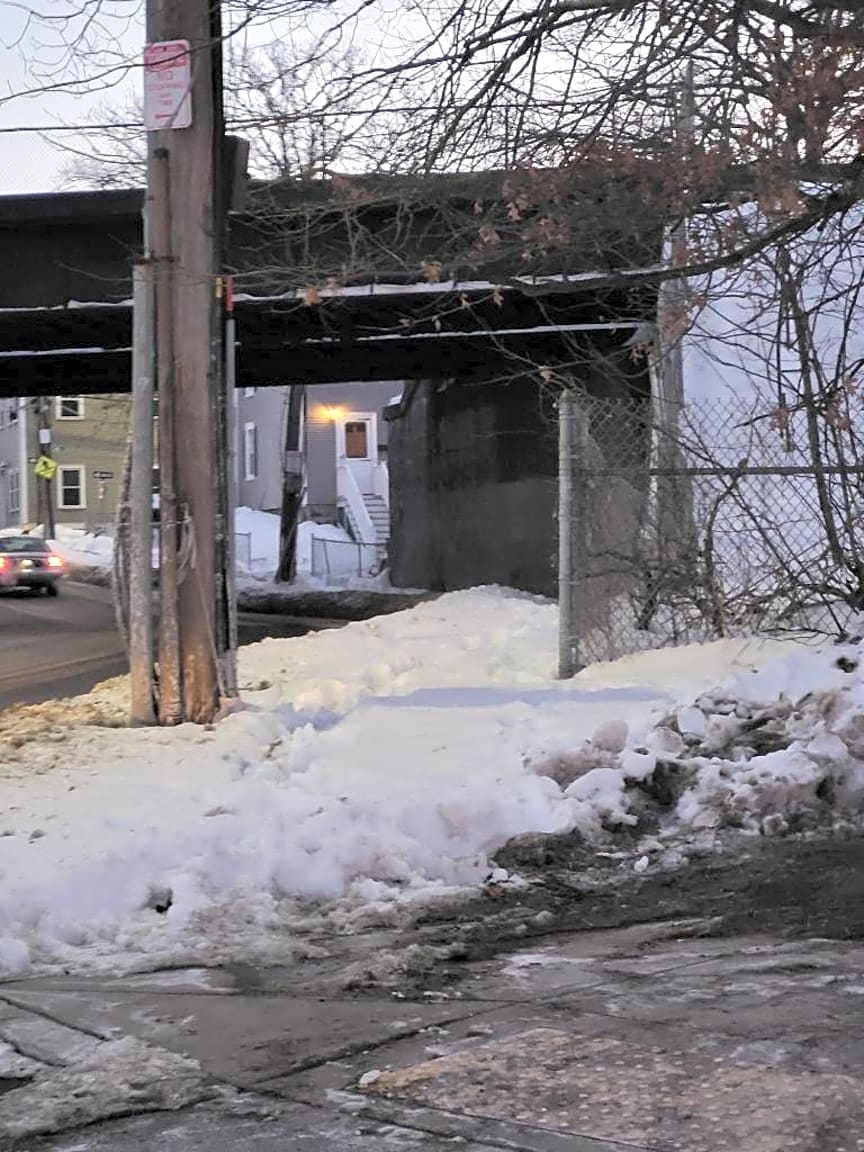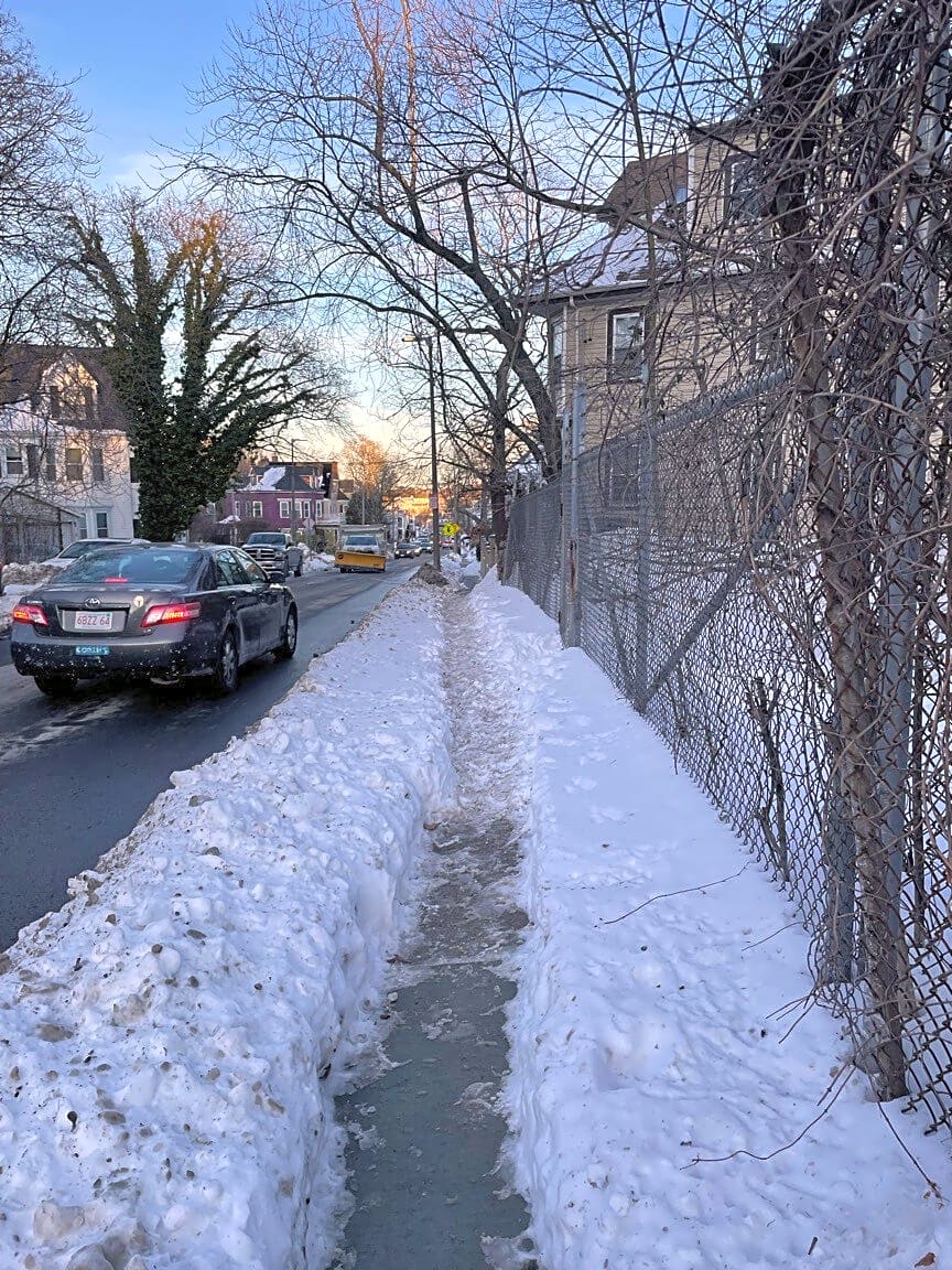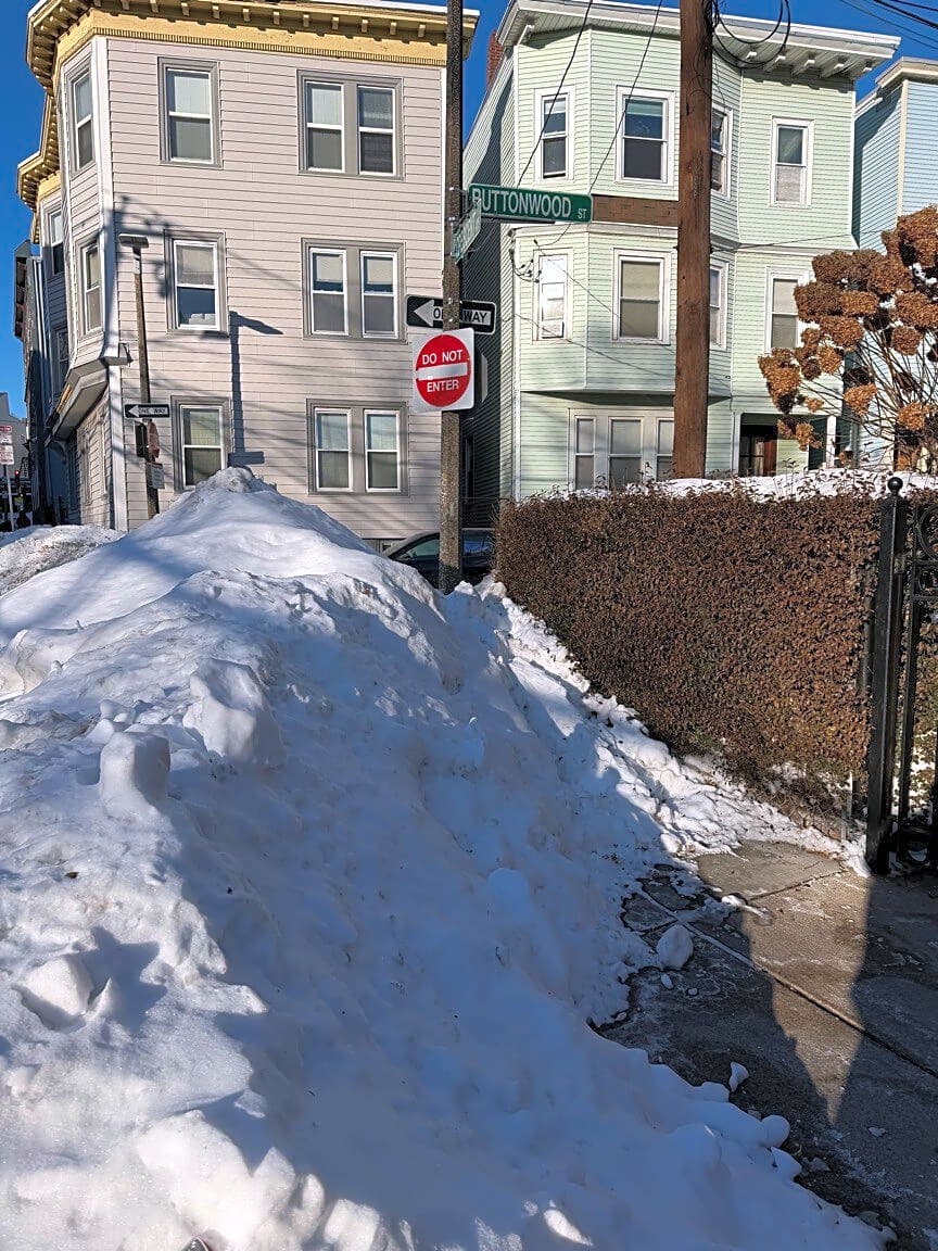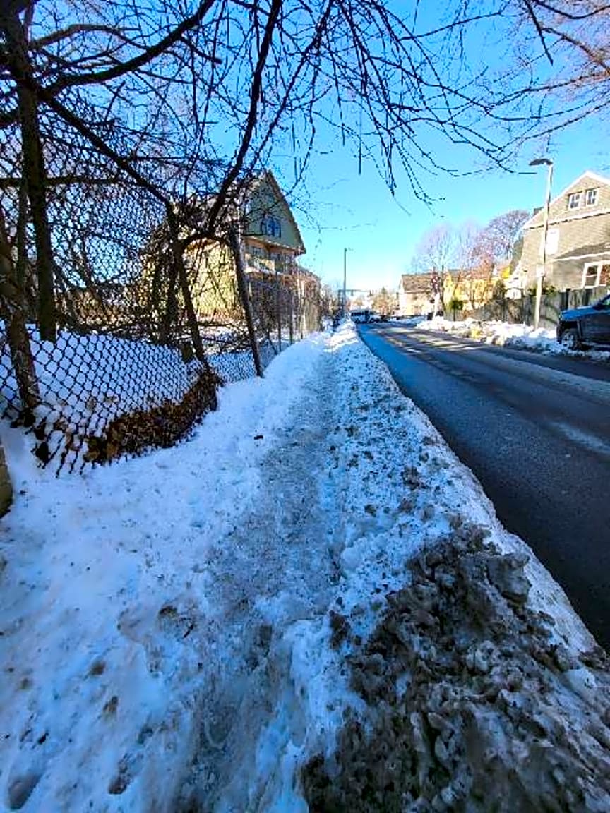Intersection Of Jackson Ave And Charter St, Boston, MaSidewalk at Copp's Hill Terrace is not shoveled
