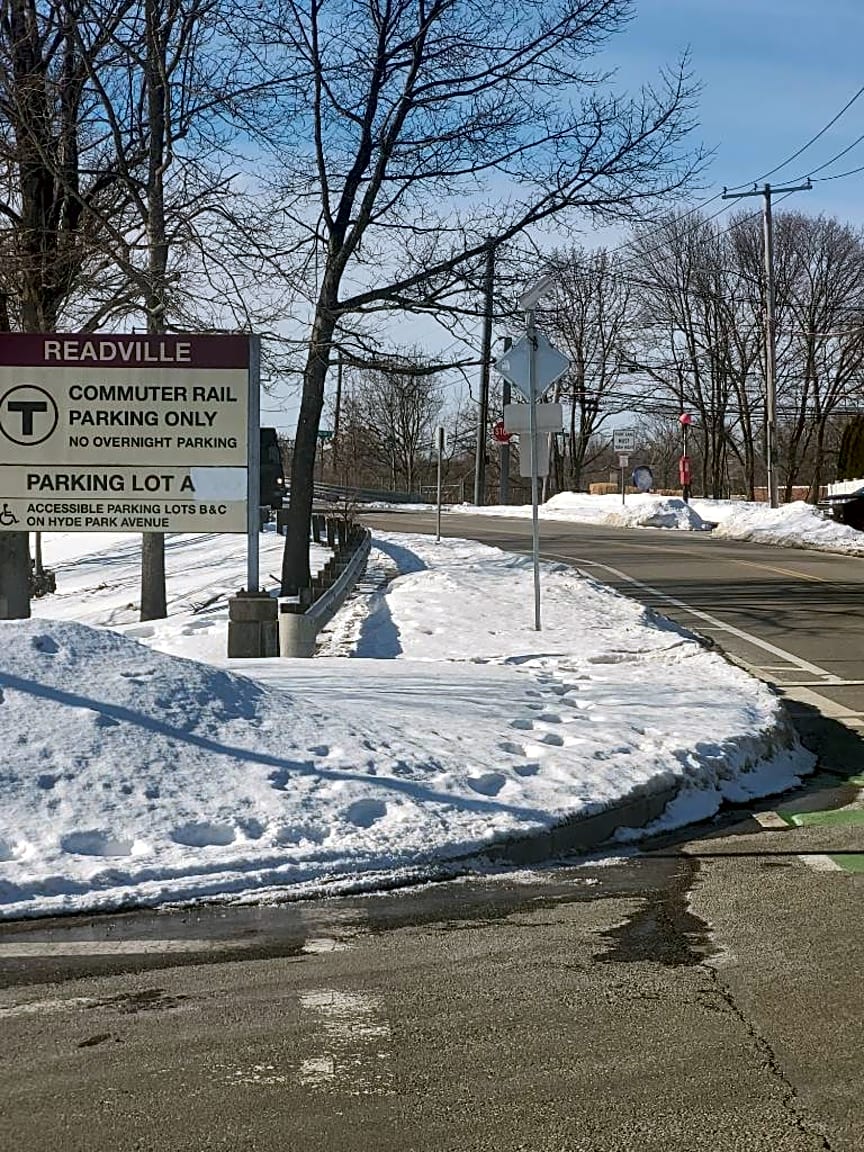 Intersection Of Industrial Dr And Milton St, Hyde Park, MaMilton Street and W Milton street until the intersection of Milton Street and Industrial Drive. Crosswalk entrances on both sides of Milton Street are not shoveled out.