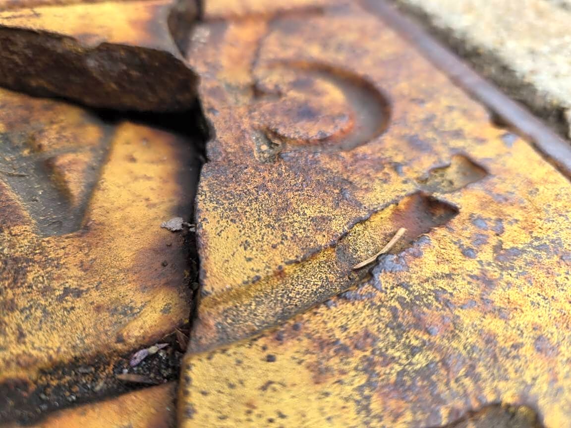 Intersection Of Hewes St And Rockland St, Roxbury, MaCracked gas cover sharp price sticking out