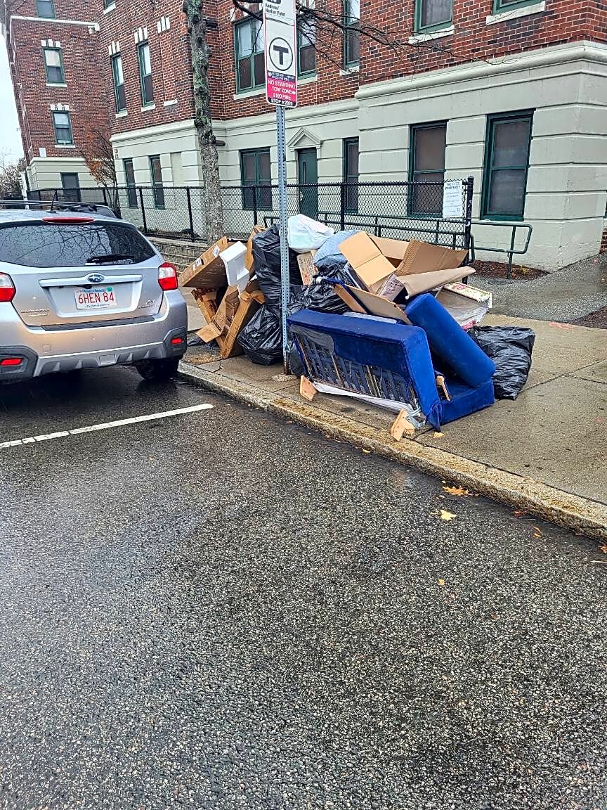 31 Union Park, Roxbury, Ma, 02118Recycling put out after collection on sidewalk in front of several buildings on the odd side of Union Park. (Between Shawmut and Tremont). Recycling truck came much, much earlier than usual today.