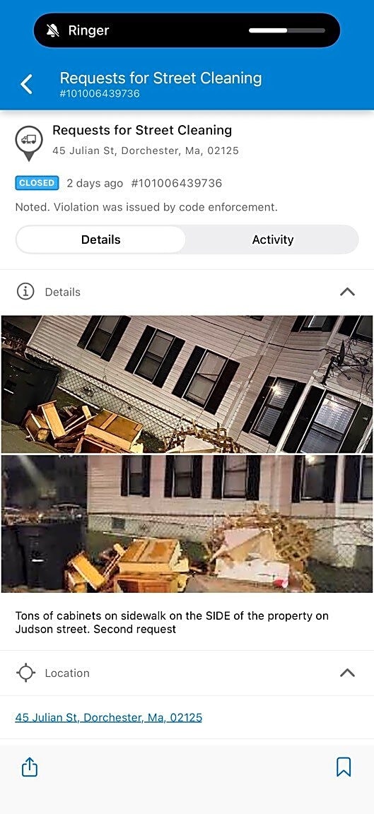 45 B Irving St, Boston, Ma, 02114Trash out on Tuesday for Friday pickup.