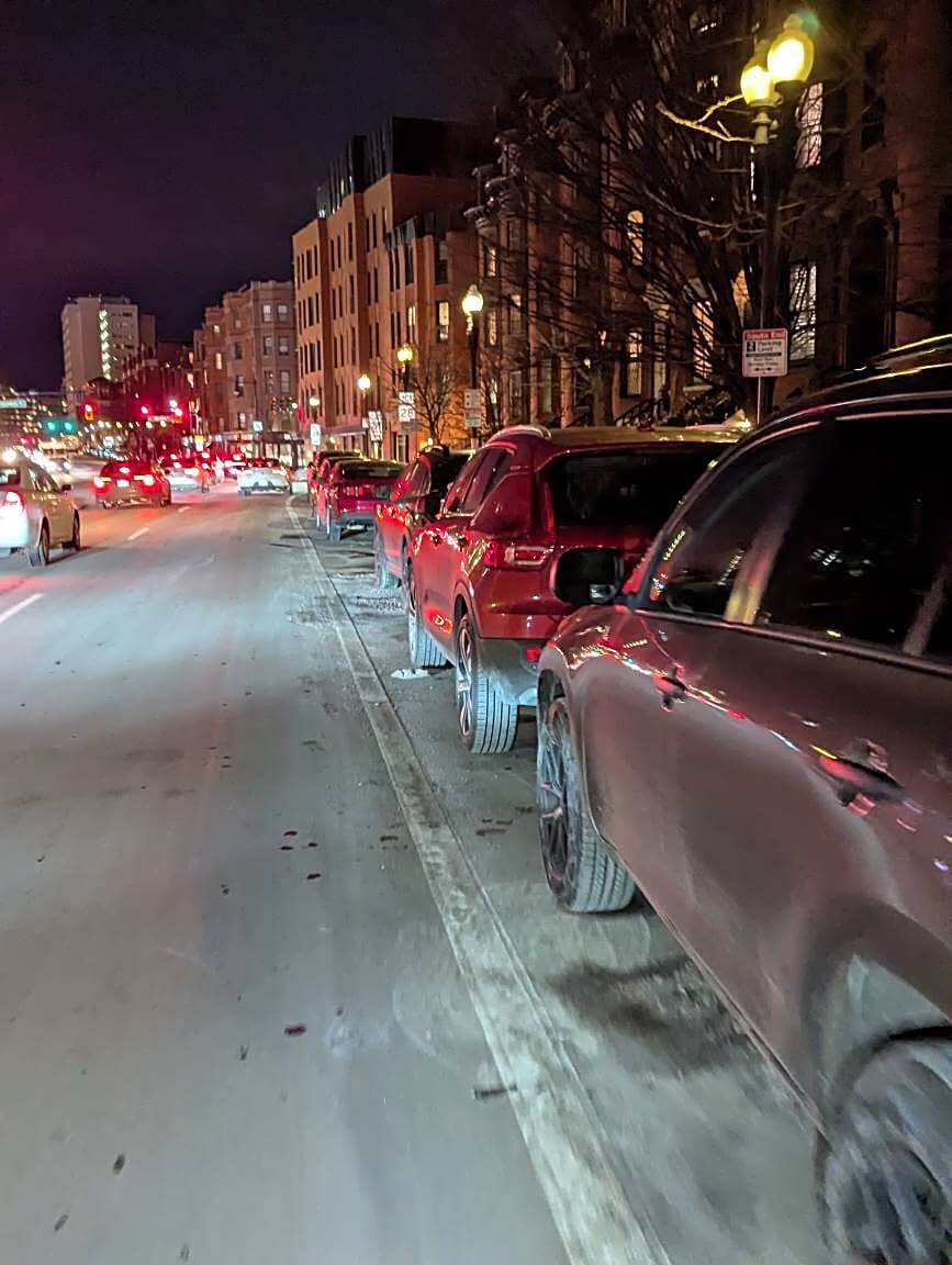 544 P Massachusetts Ave, Roxbury, Ma, 021186 or so parked cars blocking the bike lane on Mass Av