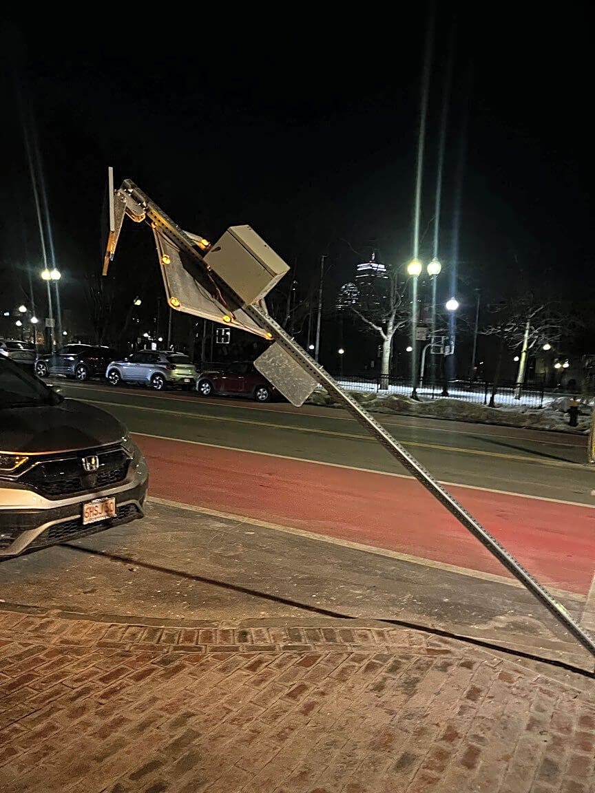 1222 Washington St, Roxbury, Ma, 02118Crosswalk sign is down by perry and washington street
