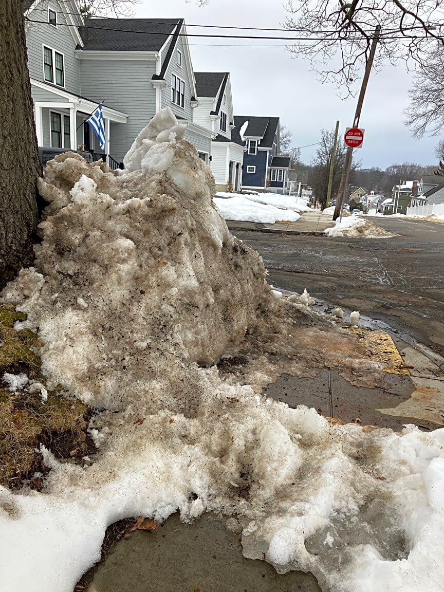 1034 Hyde Park Ave, Hyde Park, Ma, 02136Snow blocking sidewalk, unable to utilize