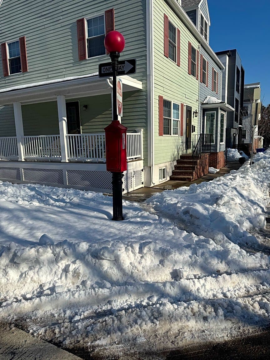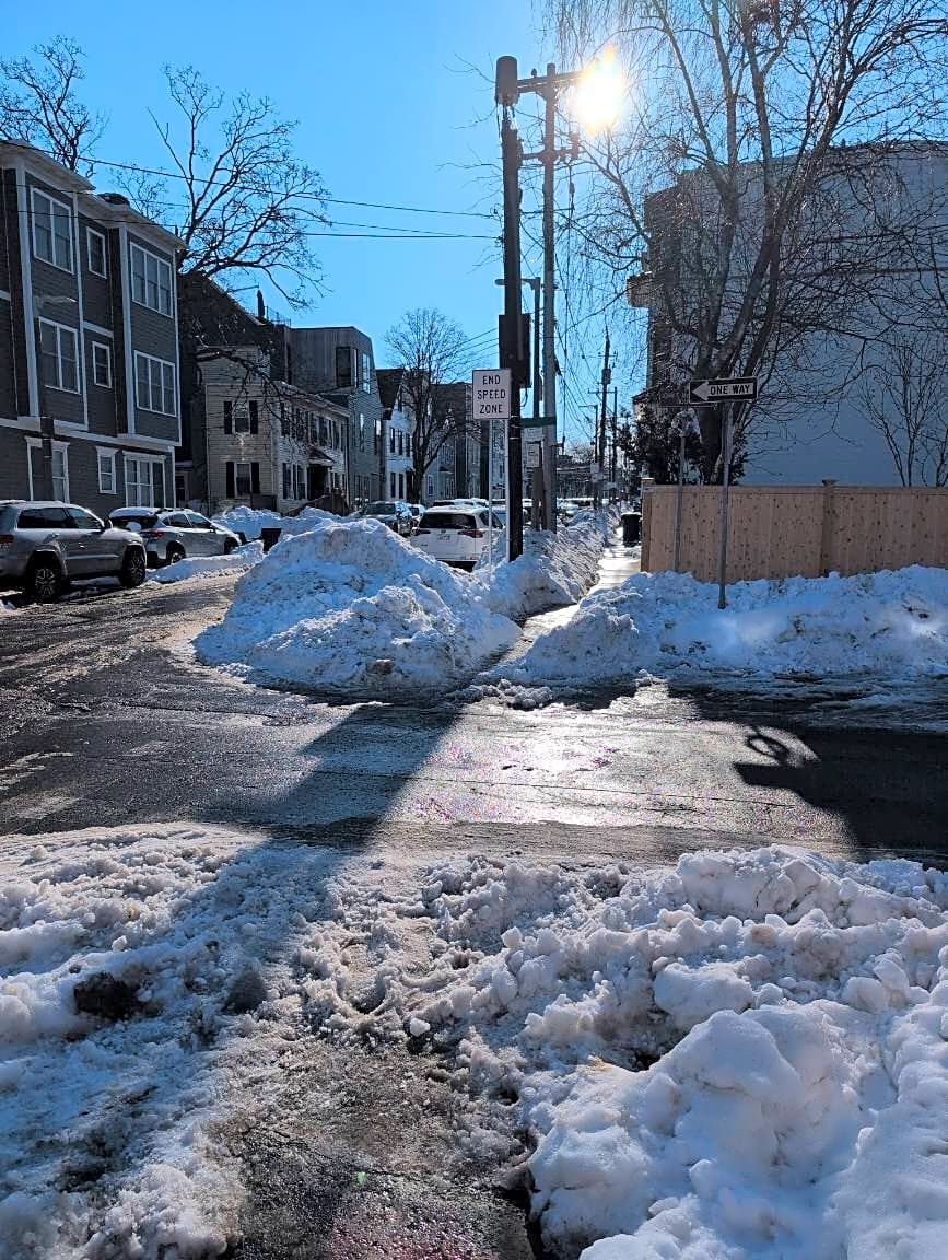81 S Huntington Ave, Jamaica Plain, Ma, 02130My street (craftson way) needs to be plowed. I am not home right now (I had to walk to work) so I don’t have a picture of the snow. It is on a bit of a hill and small cars are unable to get out.