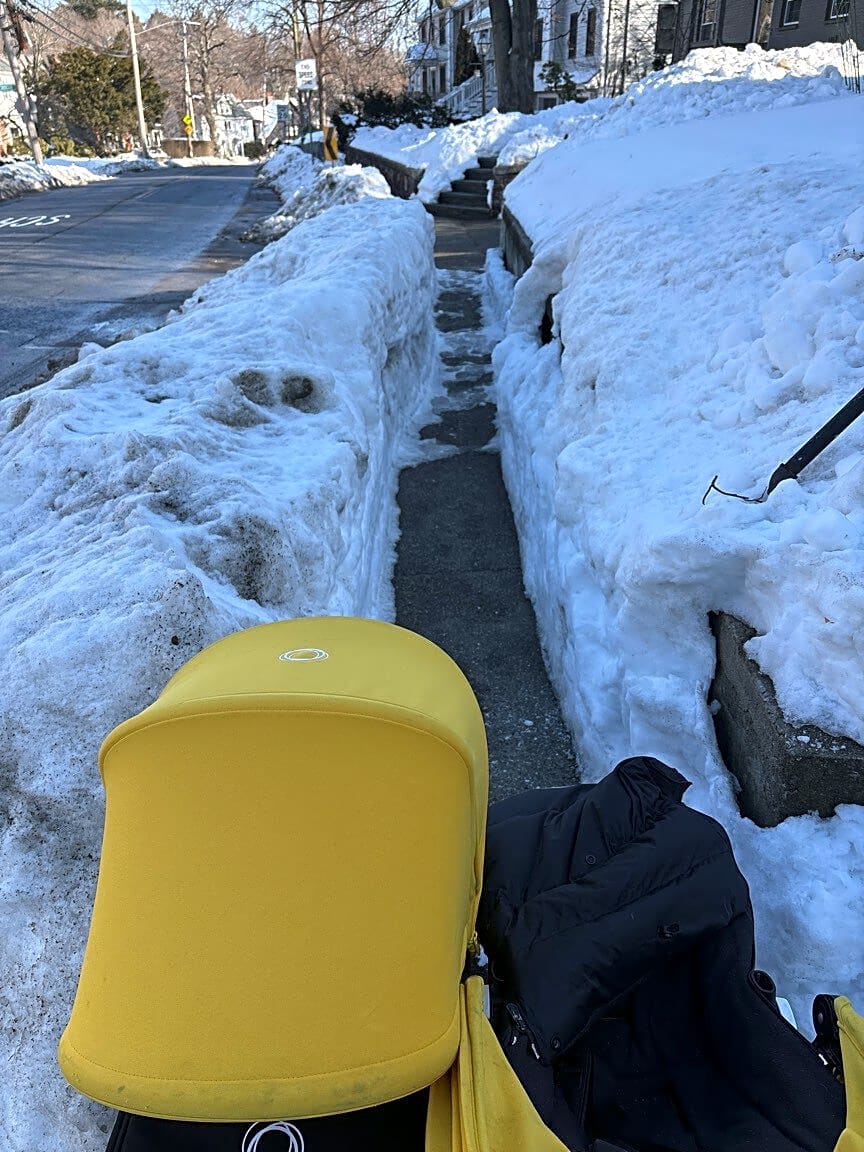 331 Pond St, Jamaica Plain, Ma, 02130Sidewalk not wide enough. City regulations are 42”. This stroller is 30” wide.