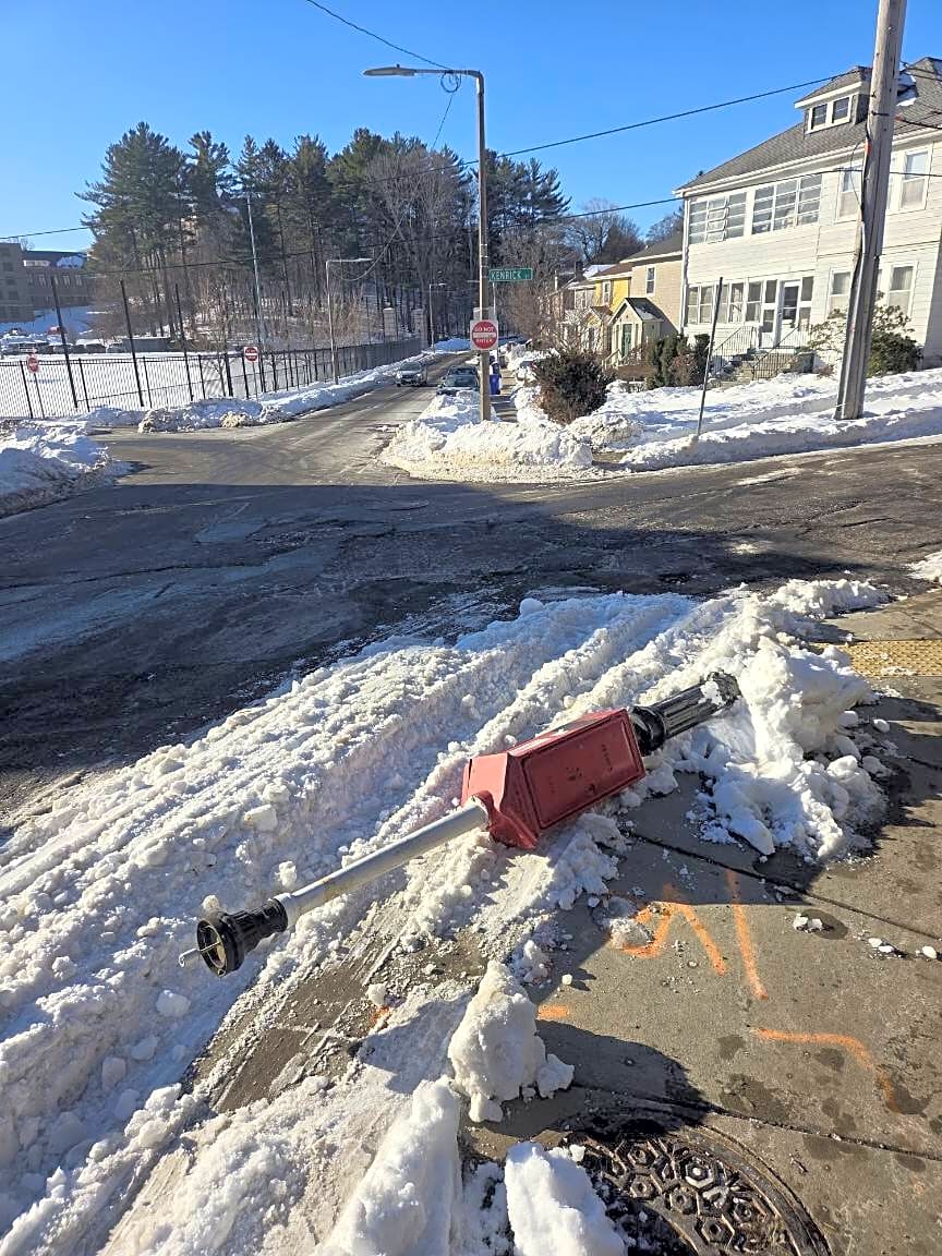 Intersection Of Kenrick St And Lake St, Brighton, MaFirebox pole knocked over
