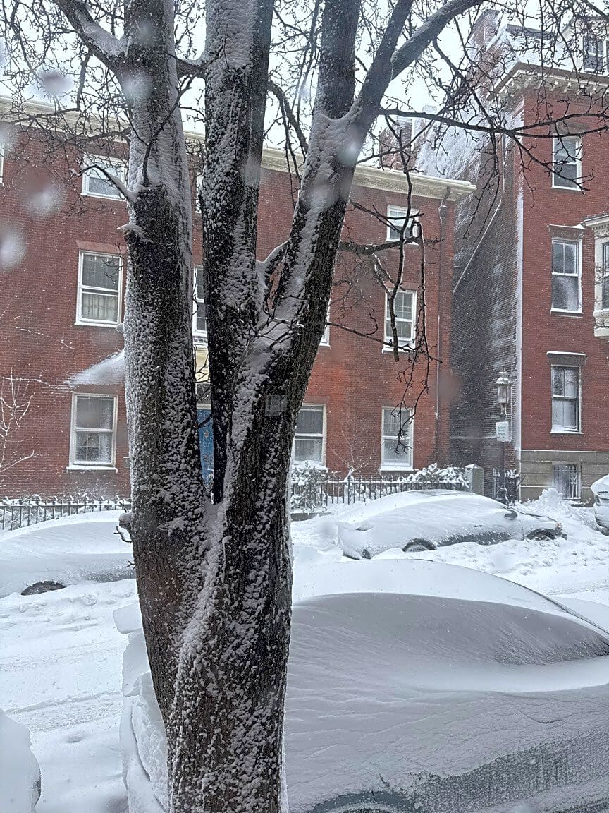11 Harvard St, Boston, MA 02129Tree in front of building needs pruning. Some damaged branches during blizzard in danger of falling on vehicles.