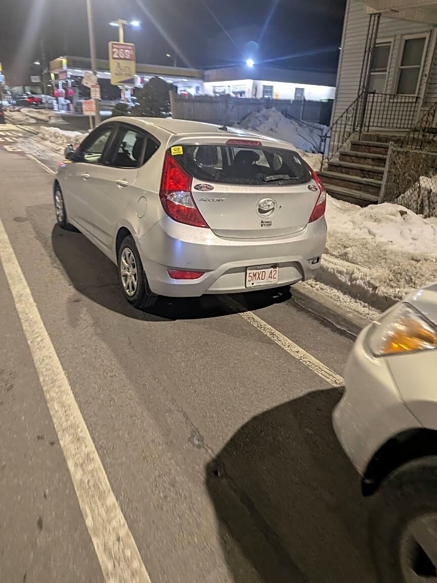 Intersection Of Roseland St And Saint Marks Rd And Dorchester Ave, Dorchester, Mano stopping zone | How is the car parked illegally: [Other] Details: [black vehicle]