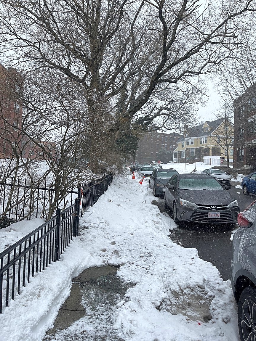 Intersection Of Braemore Rd And Chiswick Rd, Brighton, MaSidewalk not shoveled