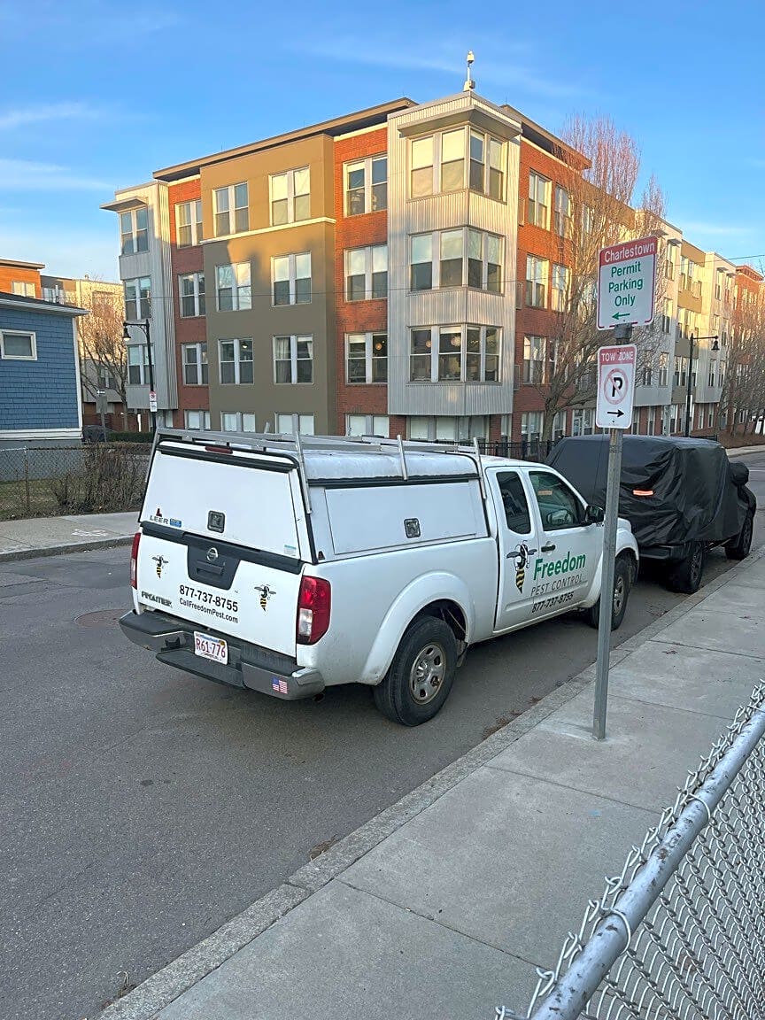 297 Bunker Hill St, Charlestown, Ma, 02129car blocking the street | How is the car parked illegally: [Double parked]