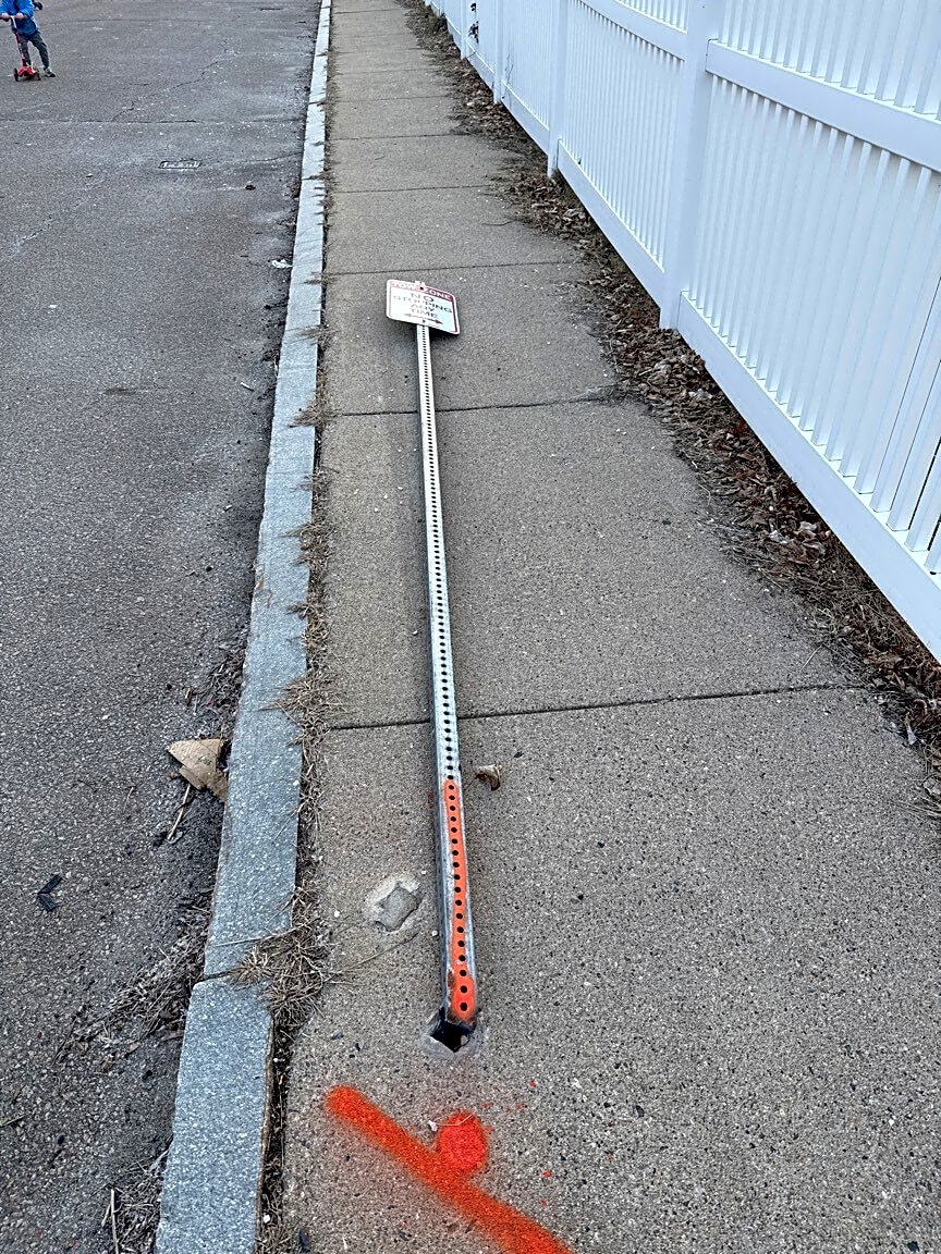 Intersection Of Wilna Ct And Willow St, West Roxbury, MaDowned street parking sign