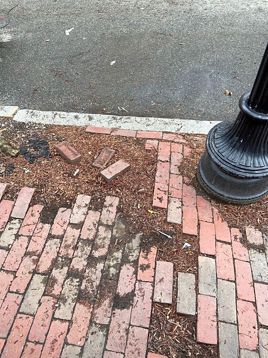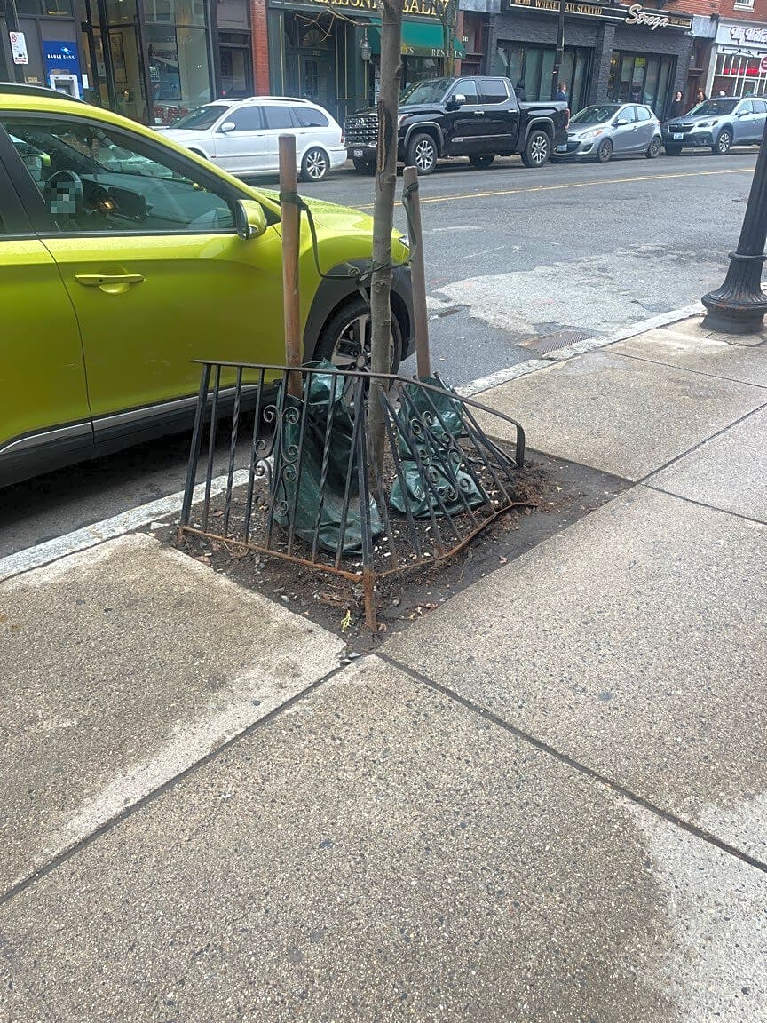 364 366 Hanover St, Boston, Ma, 02113Broken tree guards from snow plows, danger, sharp points out.