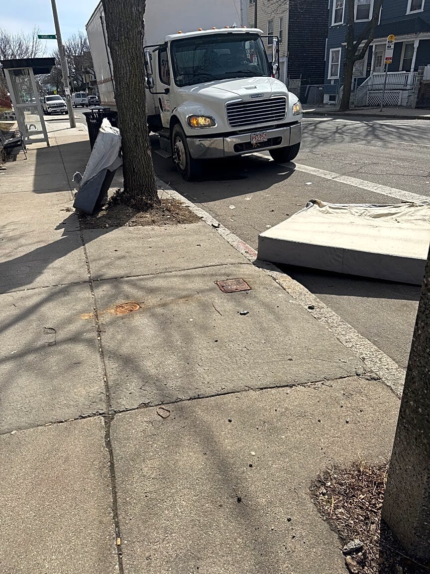 192 Hamilton St, Dorchester, Ma, 02122constituent states there is a mattress outside of the service location that has been out there for a few weeks. | Witnessed incident: [No]